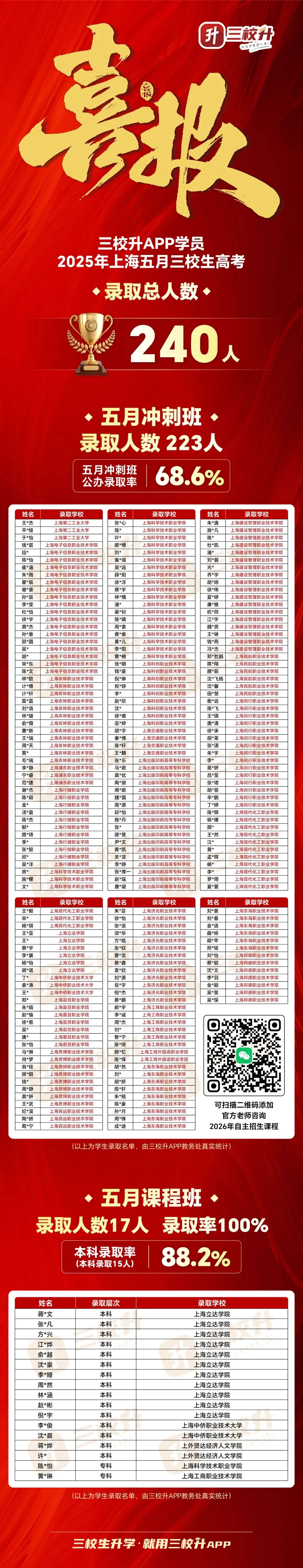 六、【三月录取】喜报!上岸946人!2025年上海专科自主招生(三校升APP)录取学员名单来啦!