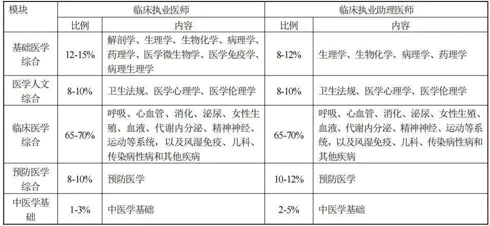 ⏩ 临床执业/助理医师考试分占比(仅供参考):