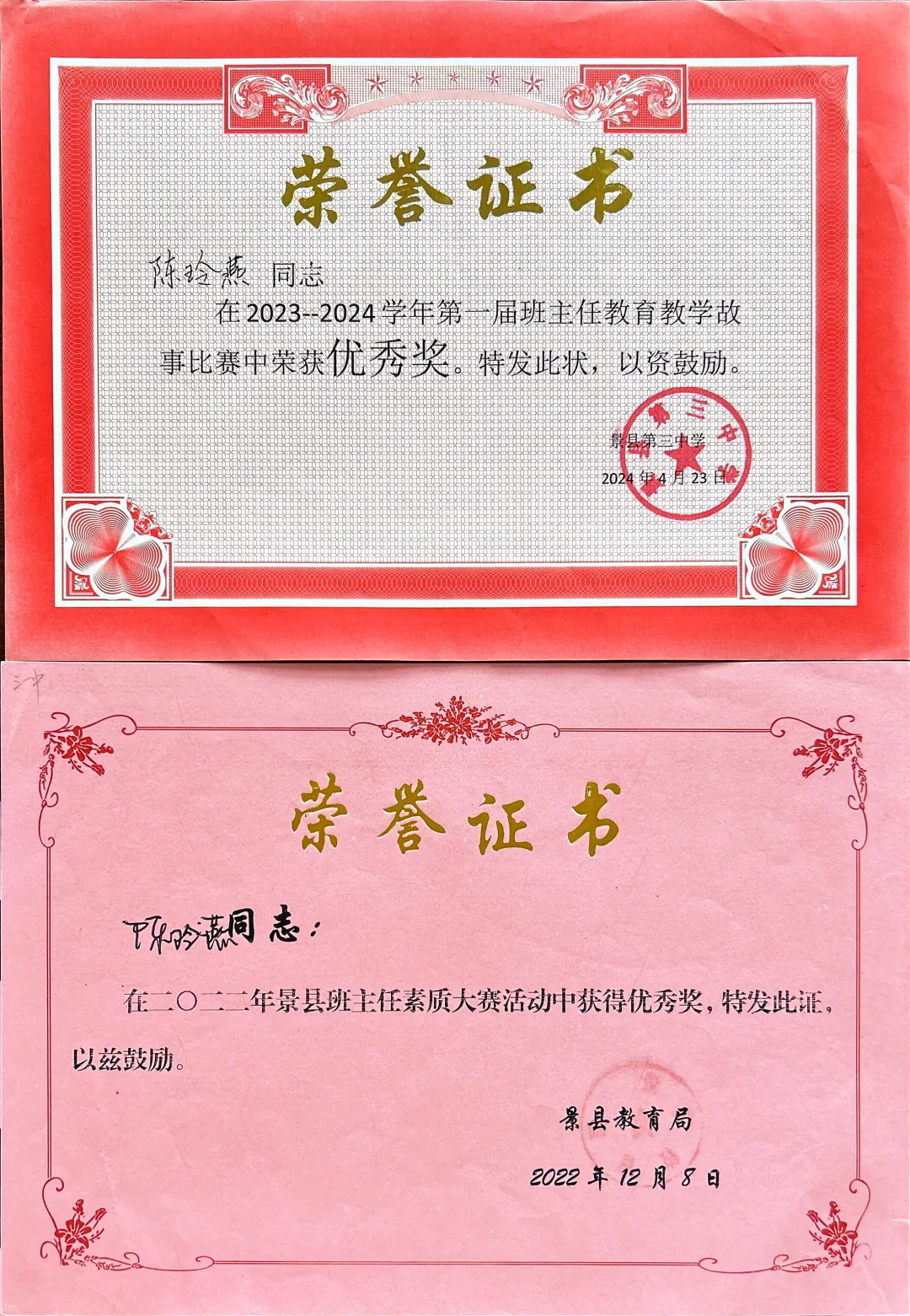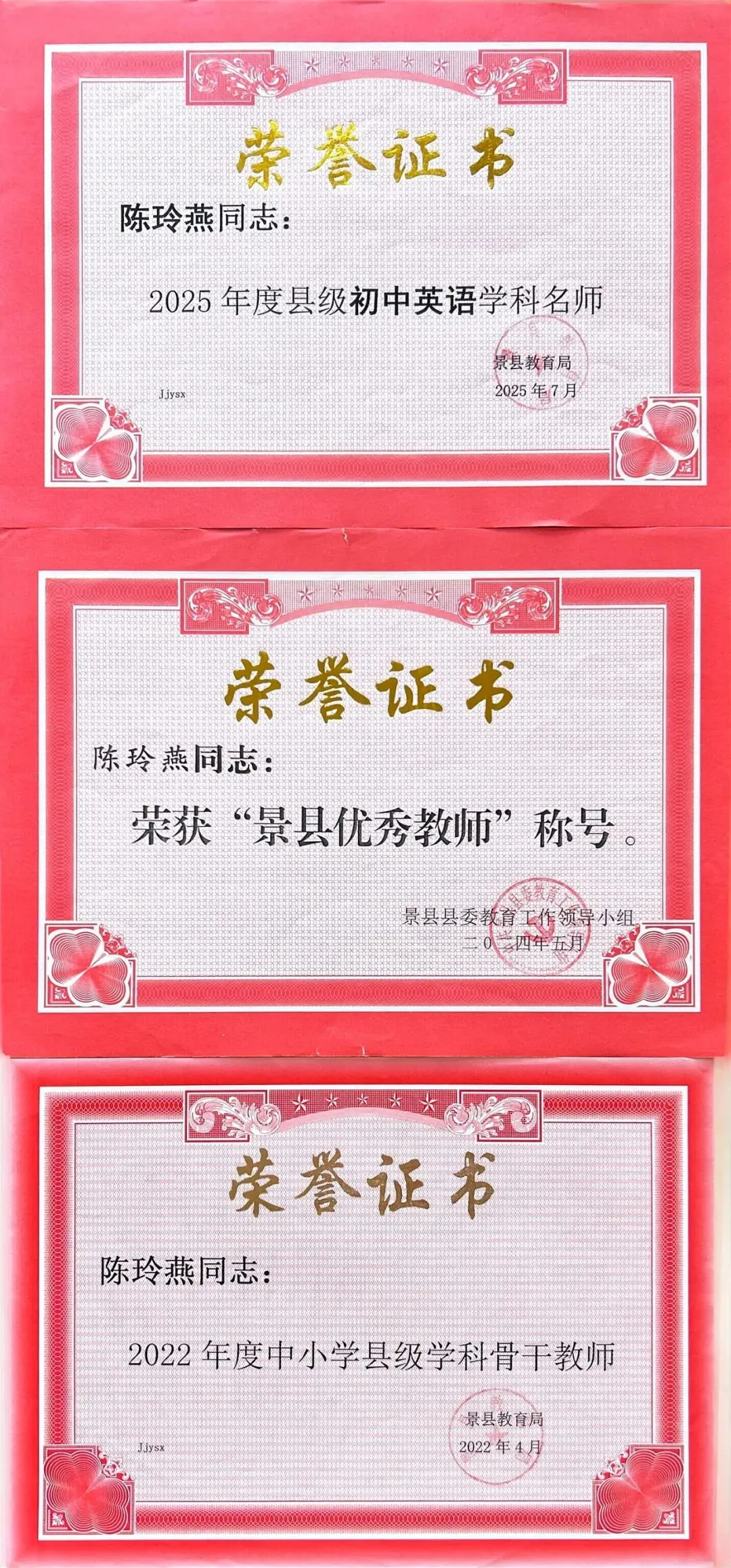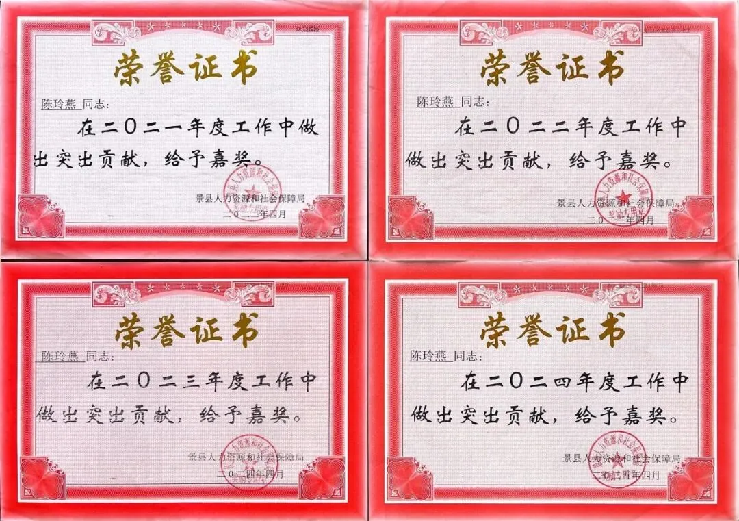 从教以来,陈玲燕老师荣誉加身,既是教学领域的排头兵,也是管理岗位的实干家。在教务处工作中,因统筹高效、成效显著,获评县级教育教学管理先进个人。