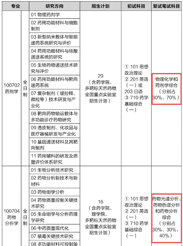 这里以中国药科大学药学院药剂学、药物分析学为例,26年复试笔试科目如下: