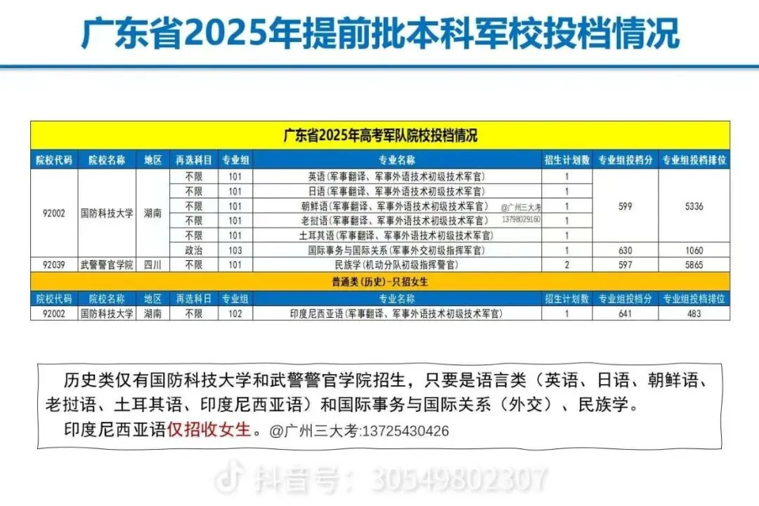 这里建议想读军校的同学最好高一选择物理类。因为历史类几乎没法报军校,在广东就两所军校招历史类。而且也都是语言类为主。想要精通一门语言是超级难的,可以说要万里挑一。对于多数人来说,学习语言类专业不适合。