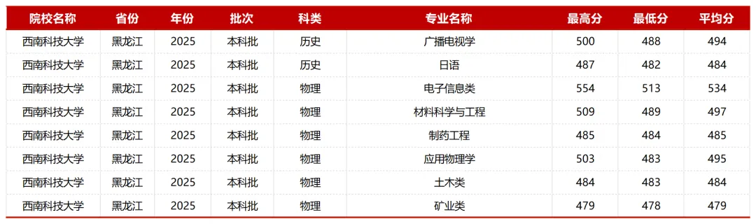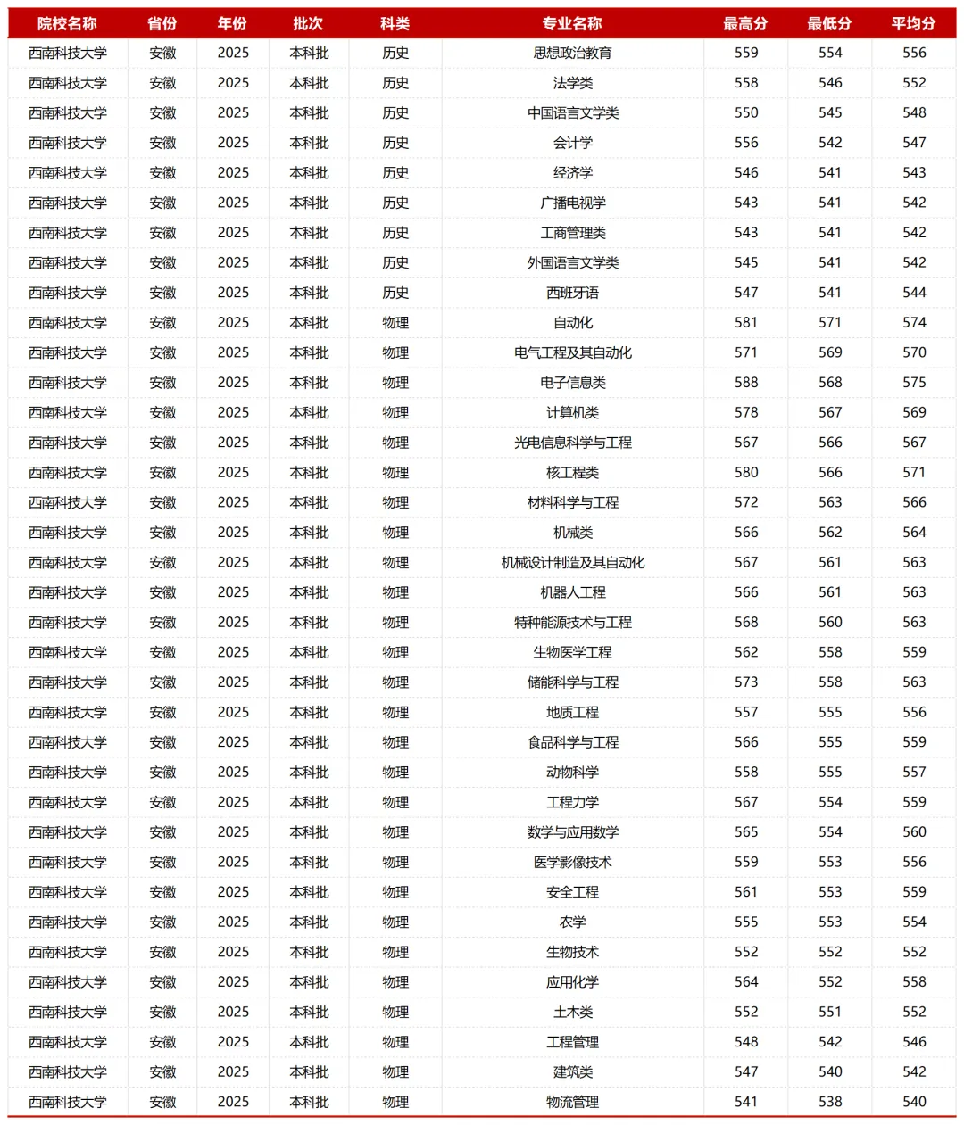 数据均来源于西南科技大学招生网,大家可以下载图片自行浏览查看,欢迎大家转发。高考资讯/升学规划/志愿填报/新高考选科