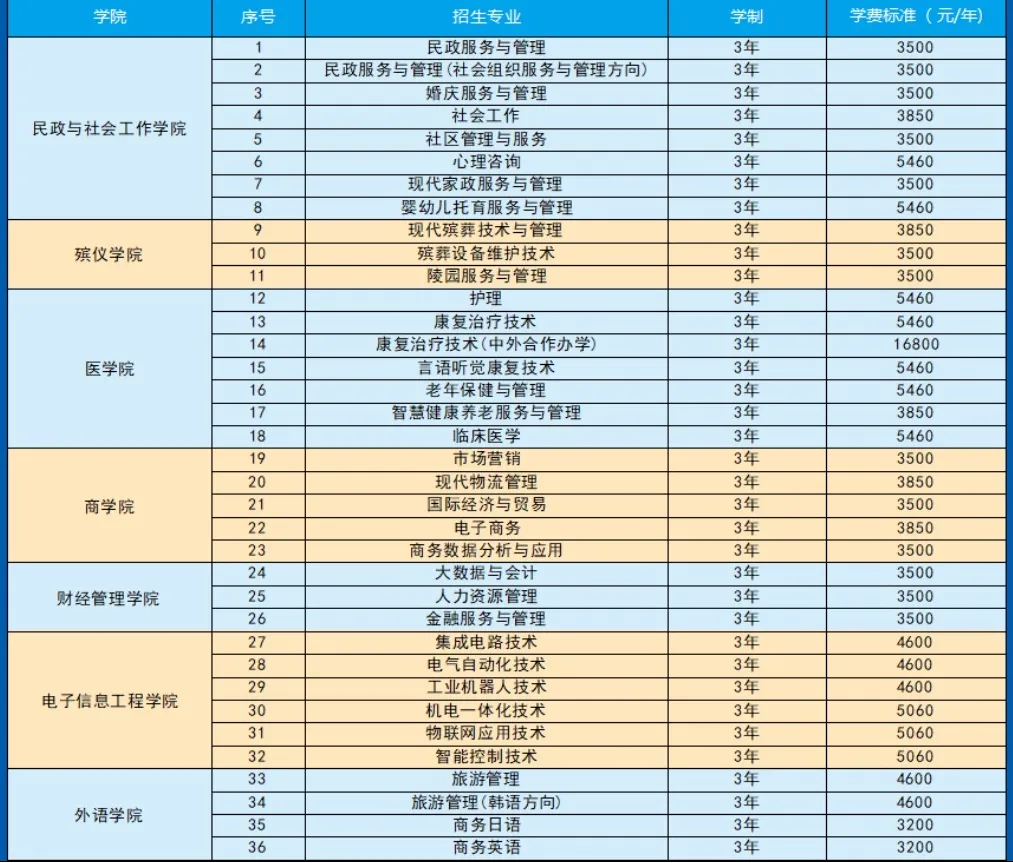 长沙民政职业技术学院云南省2025年春季招生计划
