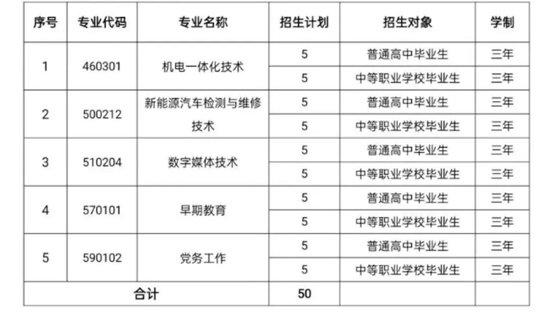 第八条 共设置招生专业5个,招生计划50名(均为全日制培养计划),具体分专业计划如下: