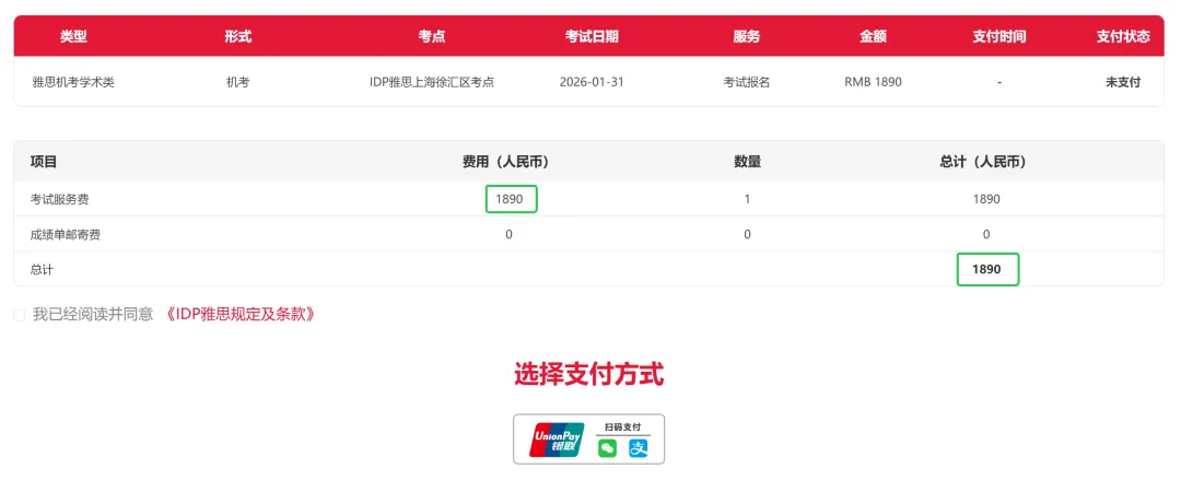 (经常备考雅思的同学们应该对以上地址非常熟悉,篇幅有限,我今天暂时不做过多解读)目前来看,2月初每天都有考试,除了过年。不过似乎每个考点每天只有一场,就是下午14点场。我分析应该是跟考务安排有关,之后扩展到早、中、晚应该不是太大的问题。相较于BC雅思目前周三、周五、周六和周日的机考安排,IDP雅思的日期选择性更多,但目前时段没有BC灵活,因为BC雅思可以实现早中晚都可以考试。当然,考务的安排,会随着考生的数量动态变动,这个没有太大的困难。口语考试也可以预约时间,时段都在上午,IDP雅思推荐最早场次。这个也与BC雅思类似,现在大部分的机考考生都是在上午进行口语考试,下午进行听力阅读和写作的考试。这是考生比较关心的,对,1890元!比BC雅思便宜100块~当然,笔者作为行业内人士,更看中的不是这100块,而是它背后的意义,雅思领域的“价格战”它真的打起来了。IDP在2024年年底短暂登录大陆举行了几场考试以后,之后以技术升级为由已暂停一年有余。在行业各方都认为,IDP雅思已经偃旗息鼓之时,IDP雅思又悄然恢复。如不出意外,相信之后的考务安排会顺利进行。也就是说,从现在开始,IDP和BC的争夺战,从“天庭”来到了“人间”。(不能多说)对于雅思考生来说,这肯定是件好事,消费者有了更多的一个选择,之后不仅仅会有“价格战”,也一定会有“服务战”、“舆论战”,总之,在保证考试公平性公正性的前提下,谁可以提供给考生更好的服务,谁就会占领更大的市场份额。今天是长三角的局部“战争”,明天“战火”就可能烧向全国。更便宜的报名费,更多的赠品,更便利的考试时间和考点,更人性化的服务......雅思考试会变,口语新题可不会变,赶紧免费定制一套最新2026年1-4月雅思口语新题吧~快来扫码添加鸭鸭吧