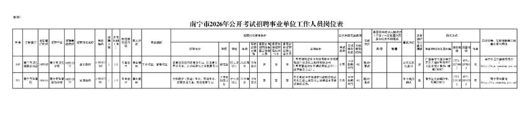 1.南宁市2026年公开考试招聘事业单位工作人员岗位表