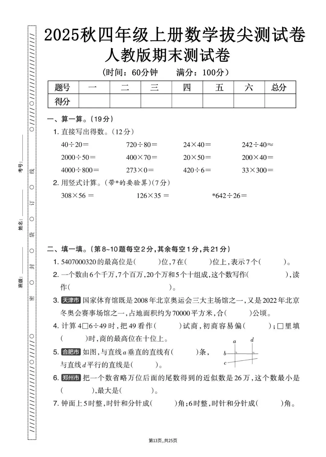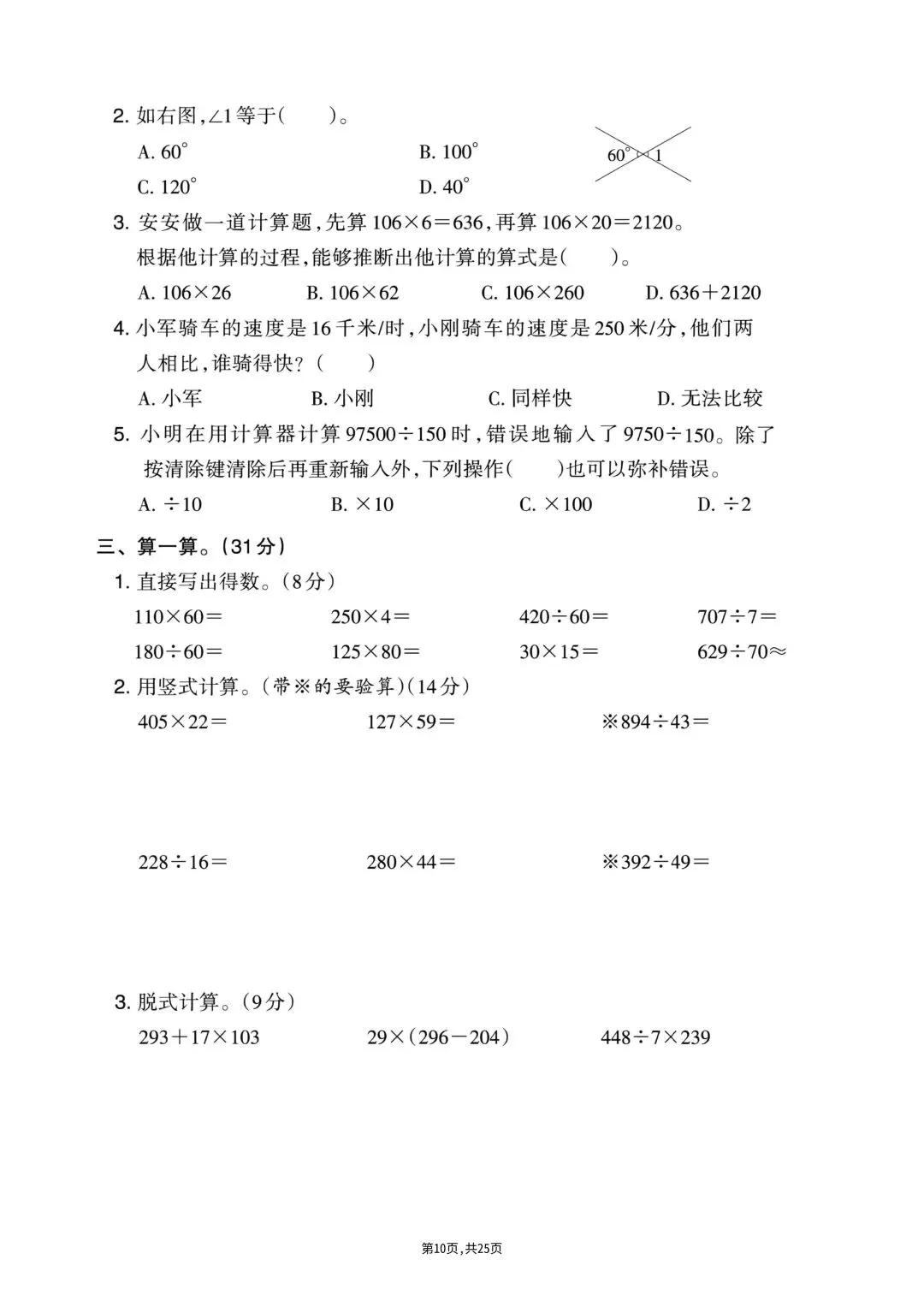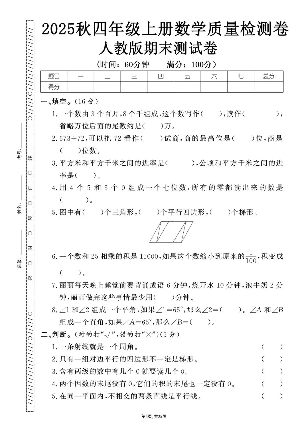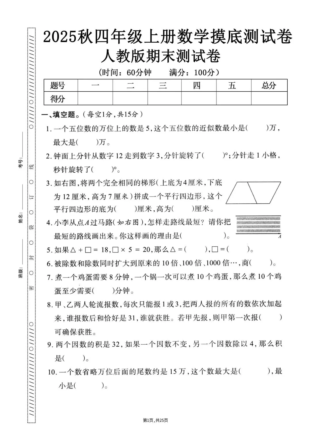 🍓25秋人教版数学四年级上册资料汇总