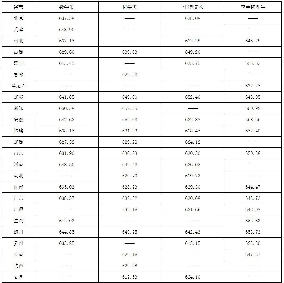 💢说明:清华大学、北京大学、北京师范大学、复旦大学、上海交通大学、浙江大学、南京大学、华东师范大学、西安交通大学、武汉大学、兰州大学未对外公布2025年强基录取分数线。