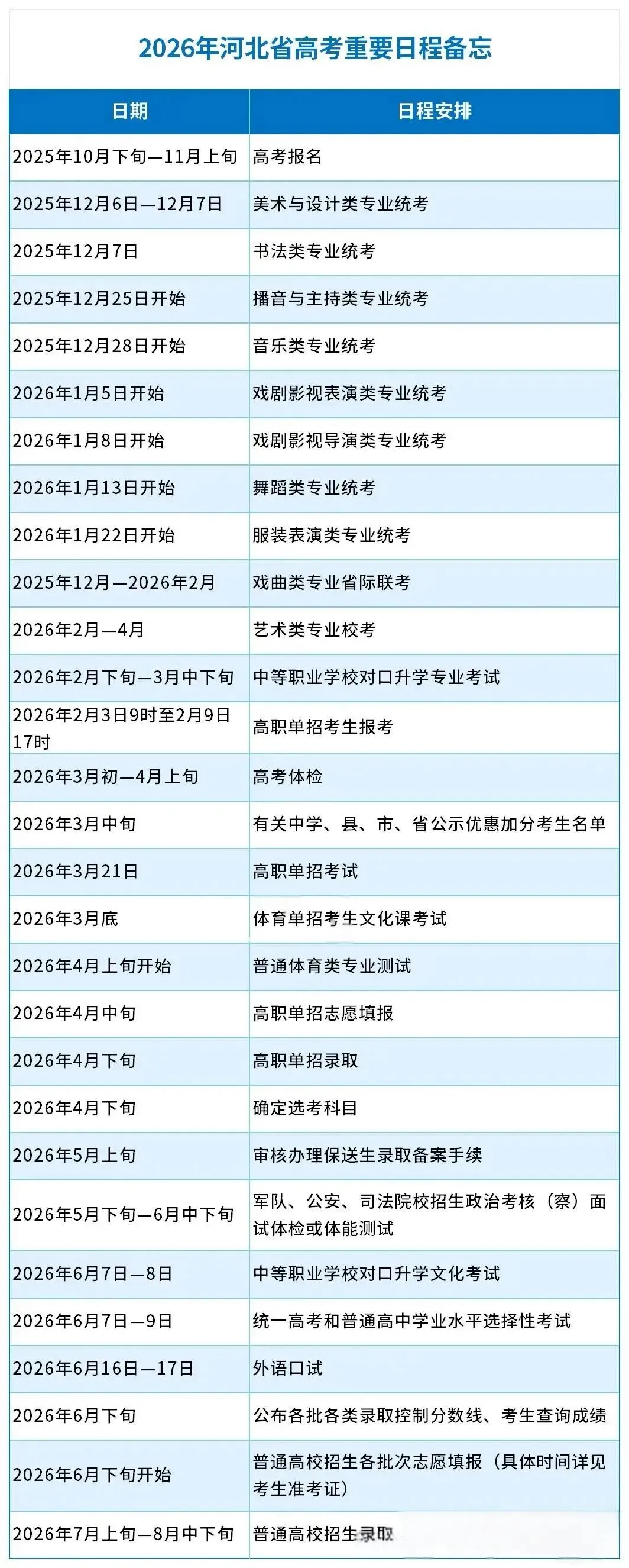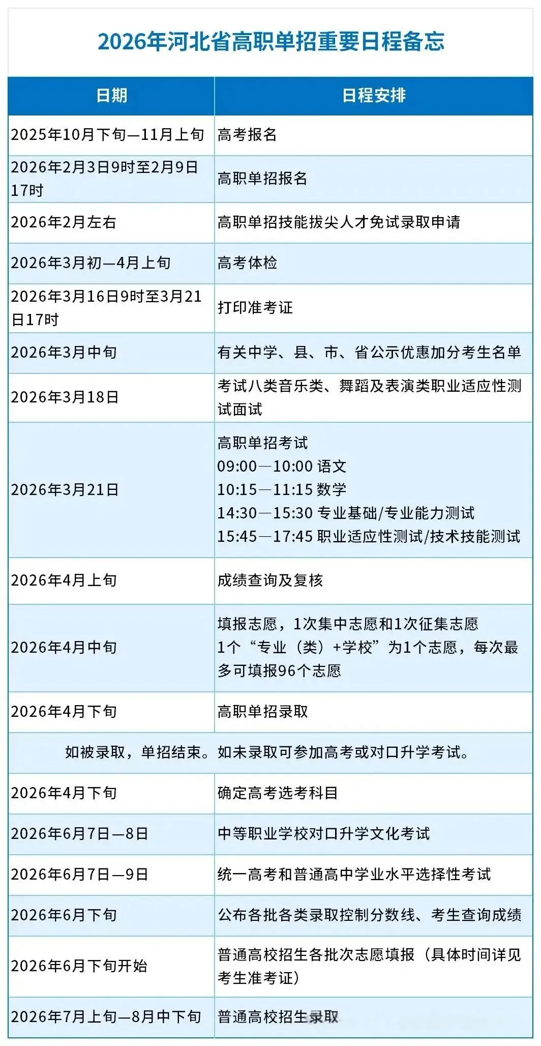 小喵今天汇总并整理了2026年河北省中等职业学校对口升学专业考试准考证打印时间和河北高职单招、对口升学、高考重要时间节点供各位备考的同学参考~