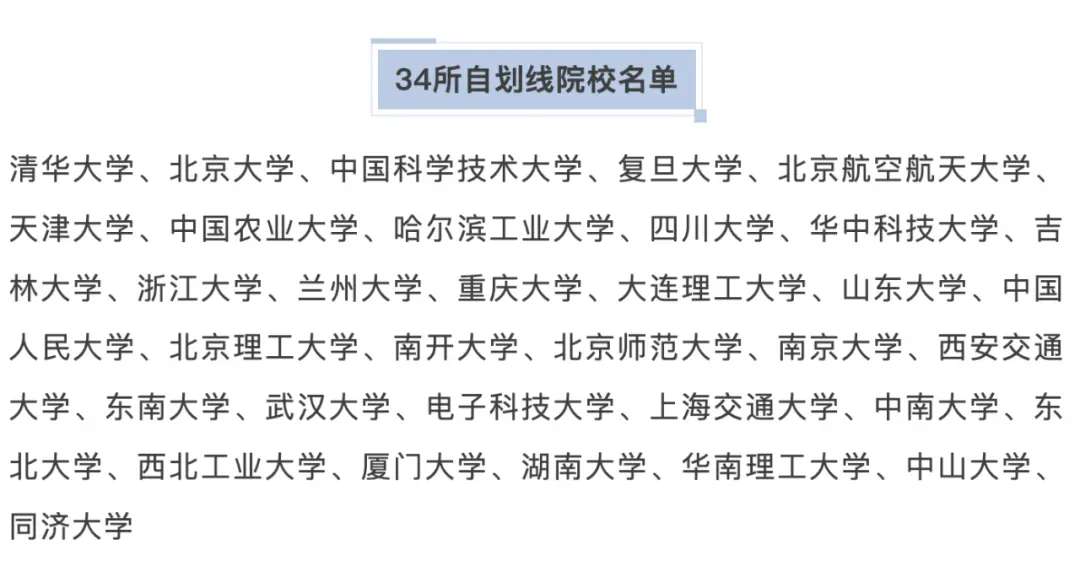 目前,只有34所高校有权自主划线。并且34所自划线高校复试工作先于其他高校进行,可以将未通过一志愿复试线的考生及时调剂至其他高校,使其他招生单位和考生的调剂更加主动。