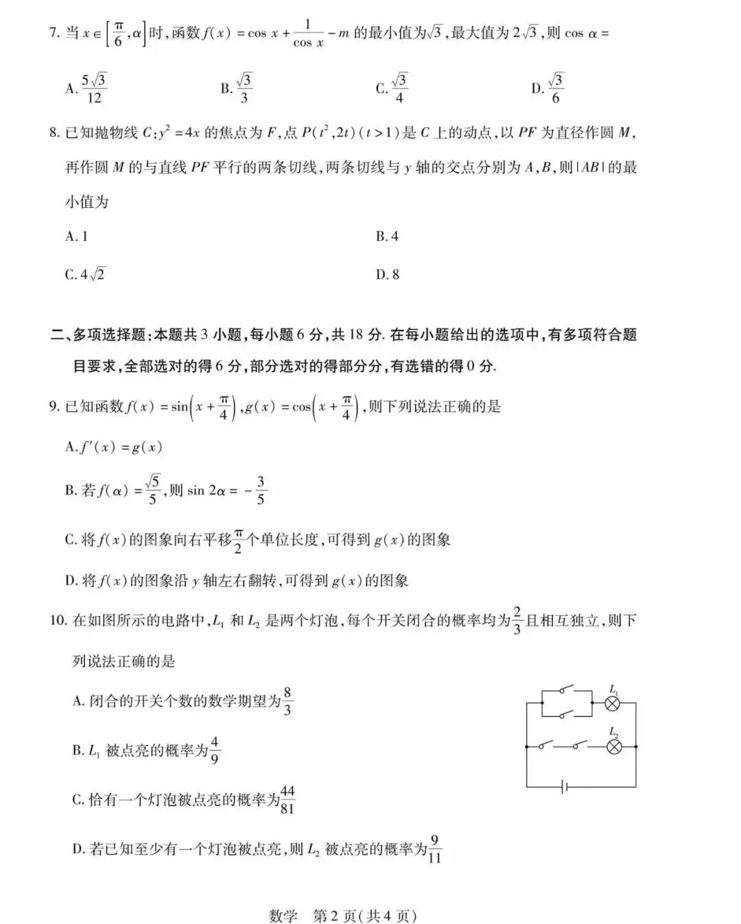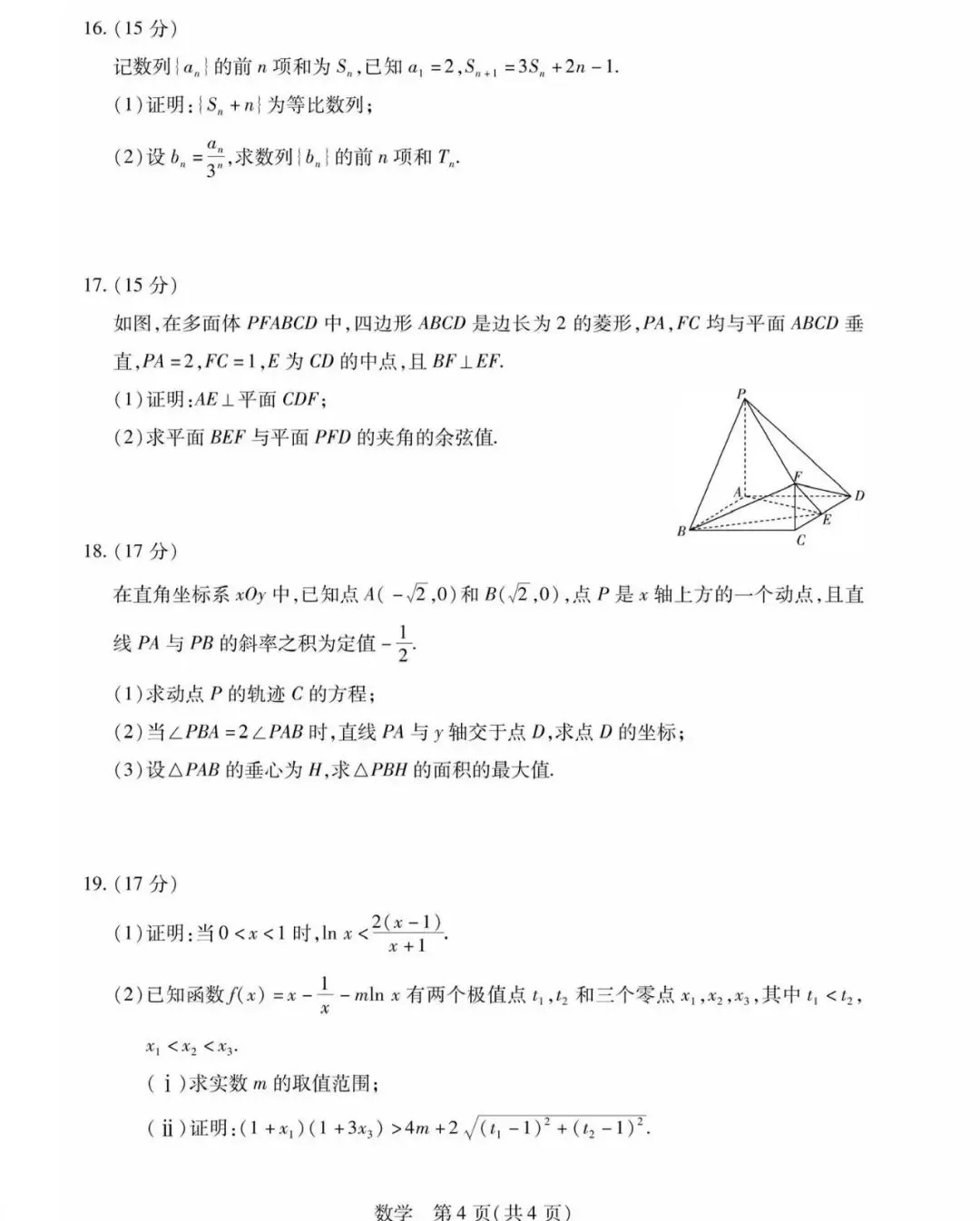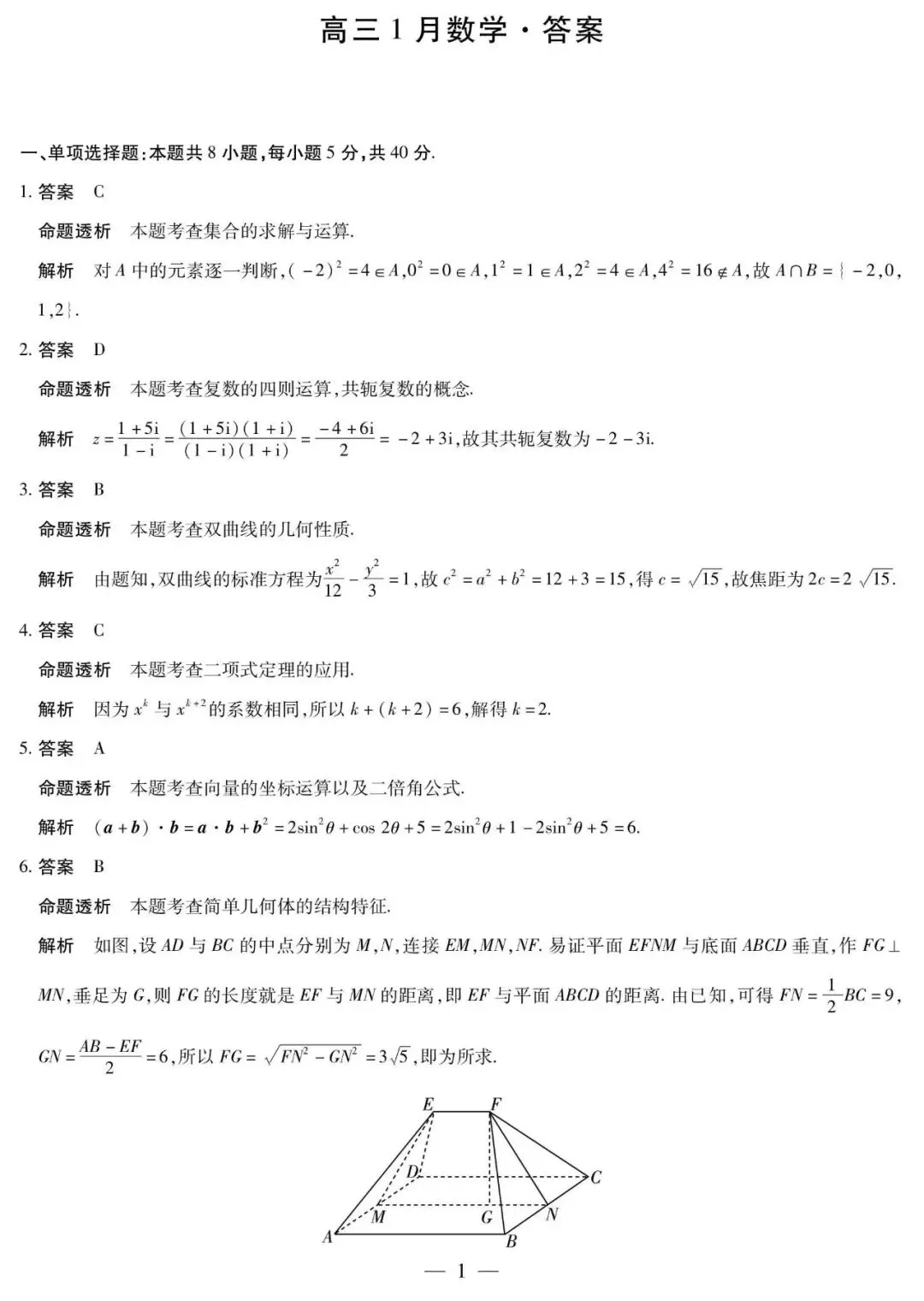 >安徽省多校2026届高三1月考试数学试题及答案