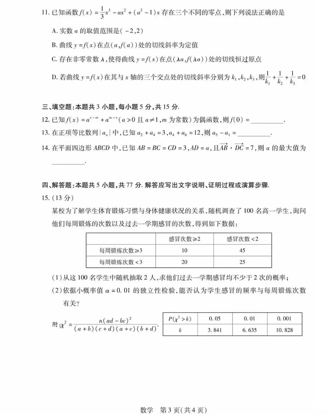 安徽省多校2026届高三1月考试数学试题及答案