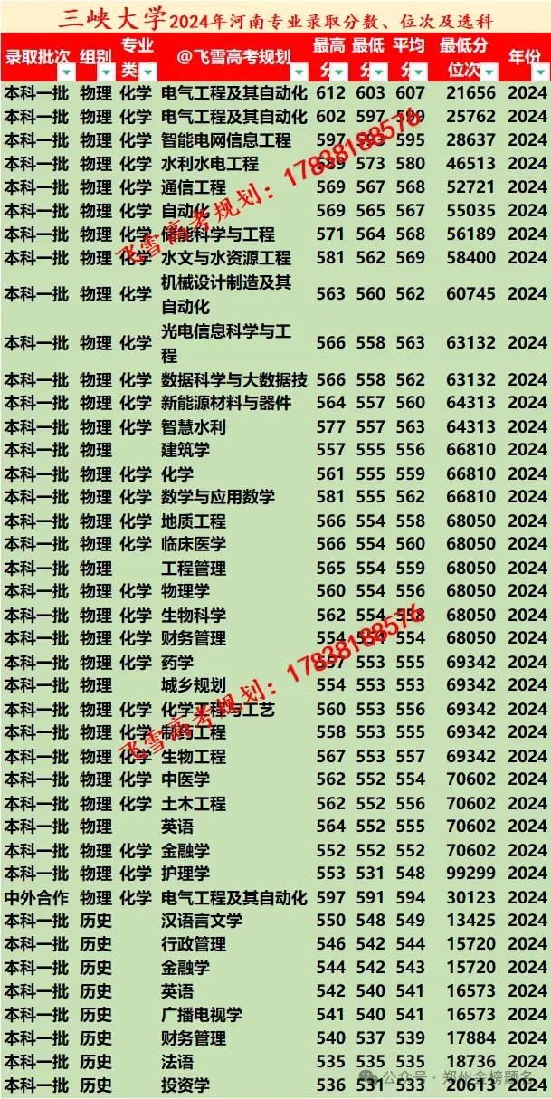 三峡大学2021-25年河南录取分数线、位次及选科