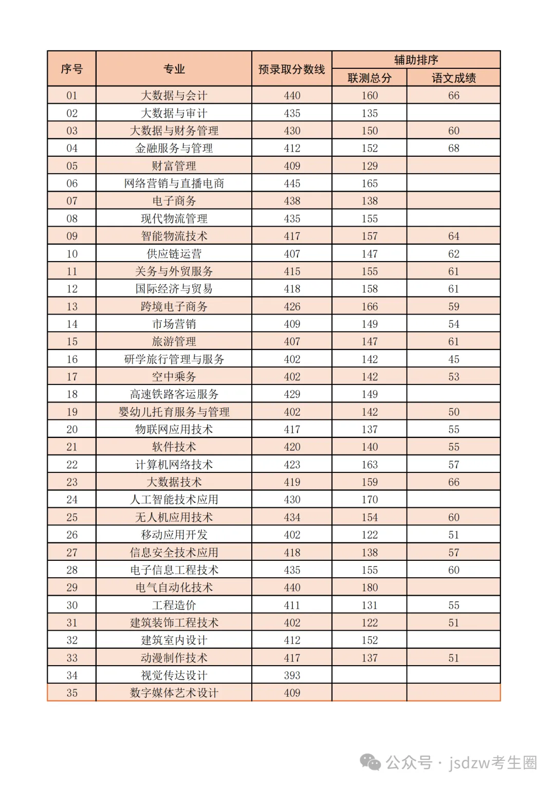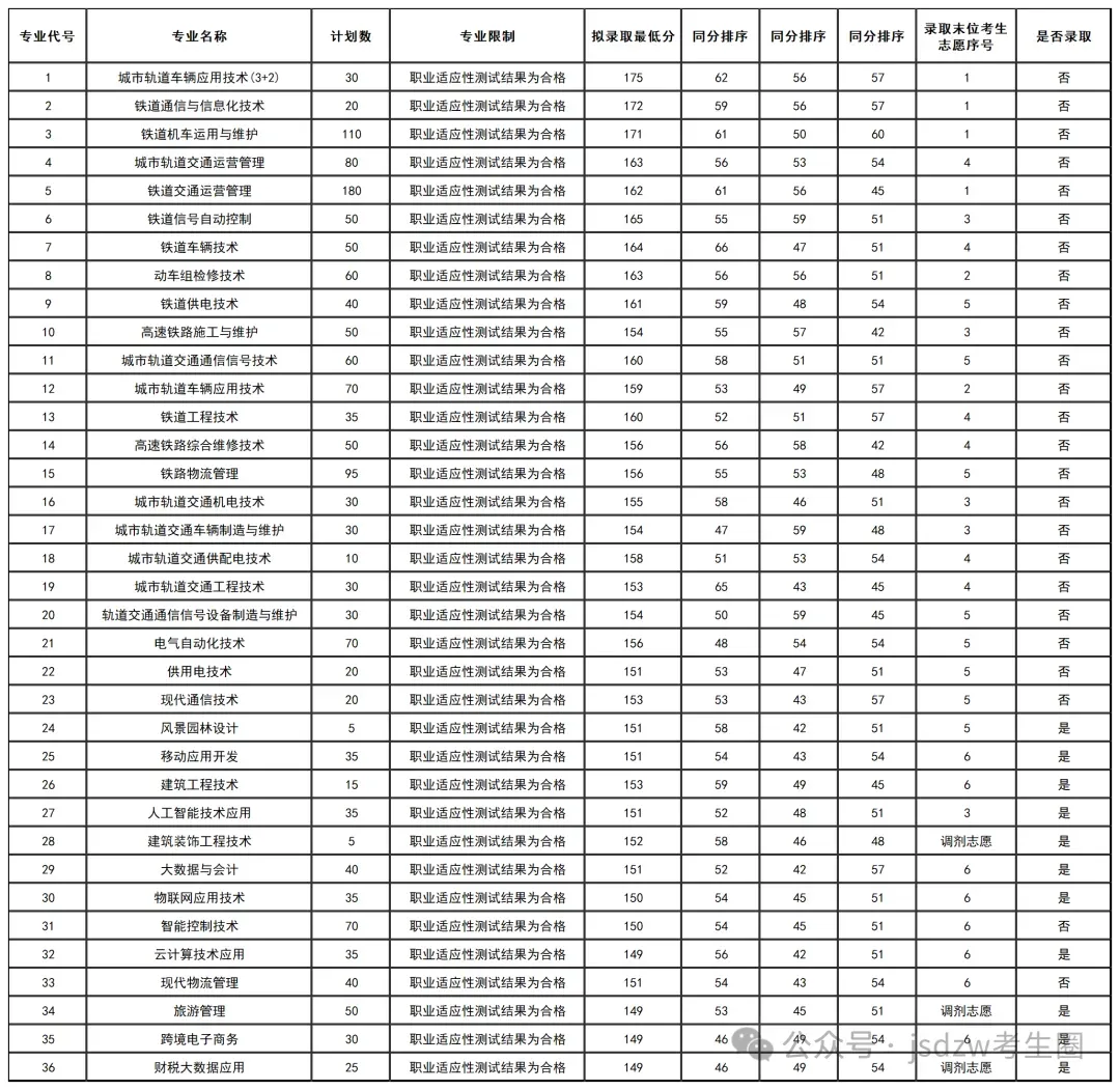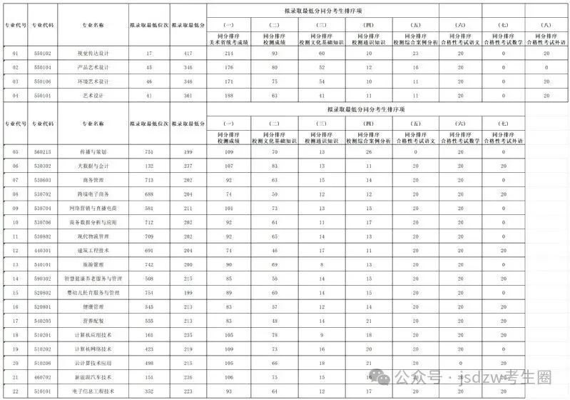 代号 | 专业名称 | 录取情况 | 同分排序原则 |
