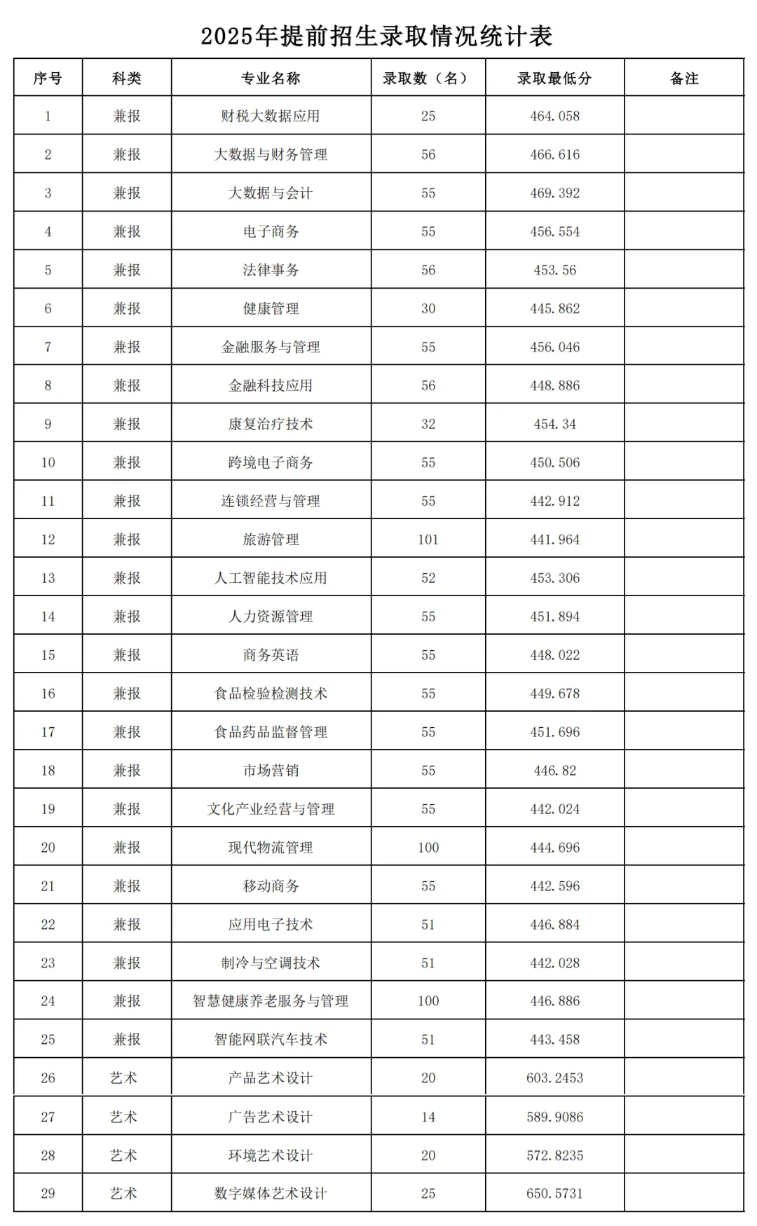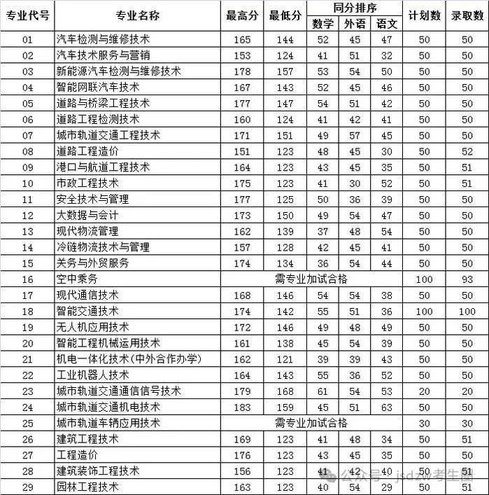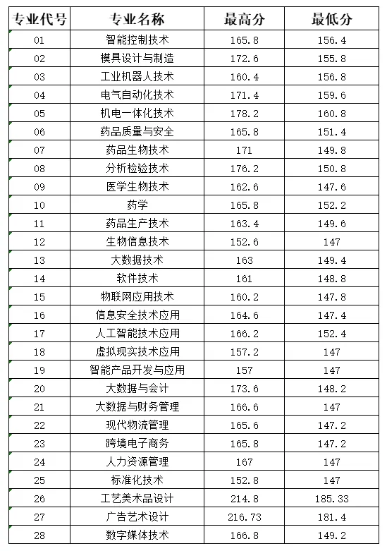 | 专业代号 | 专业名称 | 录取人数 | 录取分 |