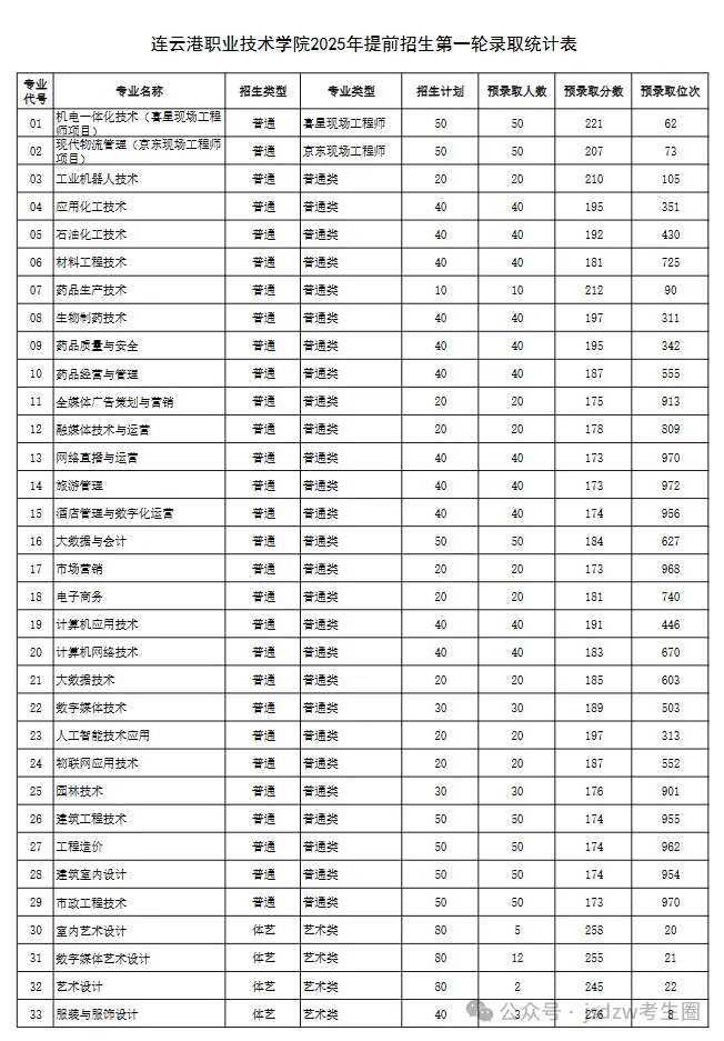 各专业预录取情况如下:1.空中乘务专业预录取80人,合格线(职业适应性测试+面试分+政策加分): 153.5分。2.美术类专业预录取4人,合格线(职业适应性测试分+美术统考分+政策加分): 281分。