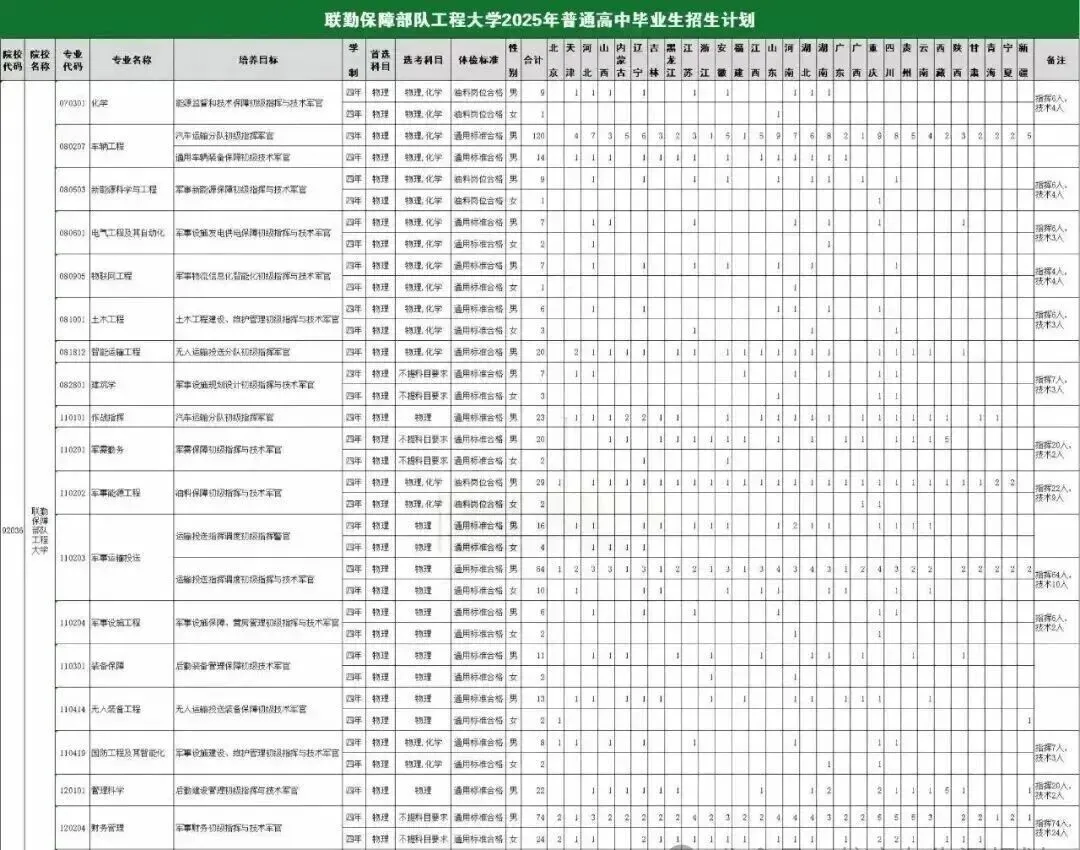 联勤保障部队工程大学:以陆军勤务学院、陆军军事交通学院本部及所属汽车士官学校为基础组建(上图中招生计划已合并2024年)