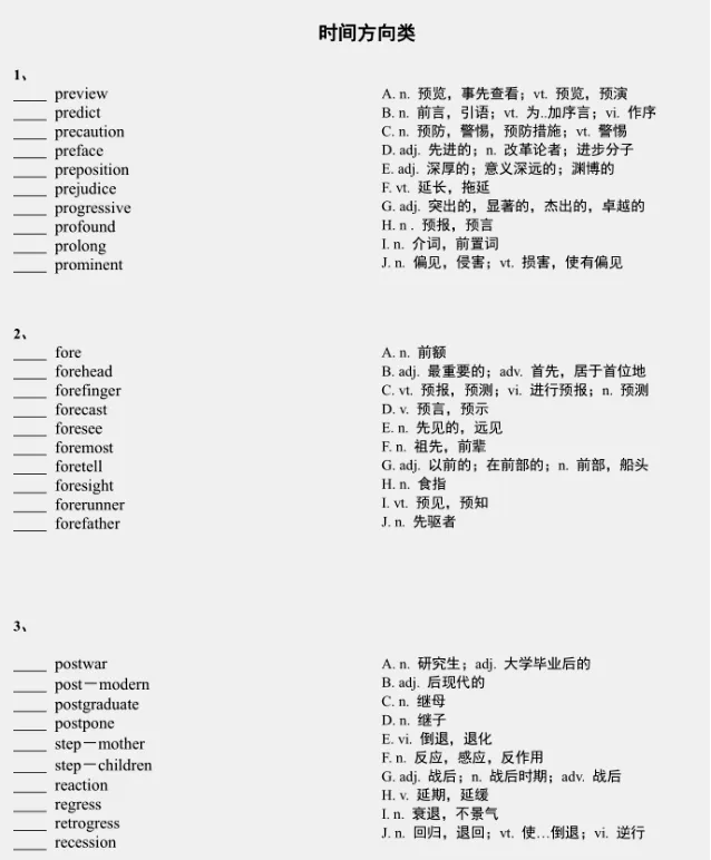 Day2词汇连线题(时间方向类)