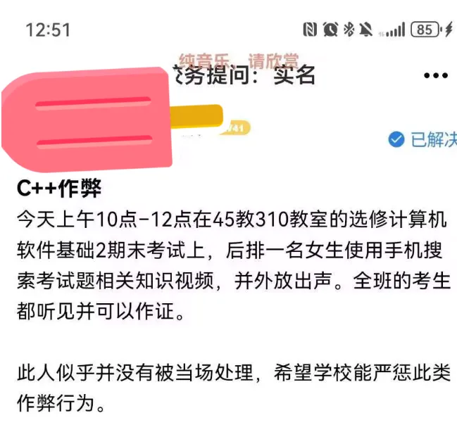 好家伙,称“考虑反映问题的方式”,那么通过什么方式?当场指证?还是去找教务处现场举报,还是实名举报?