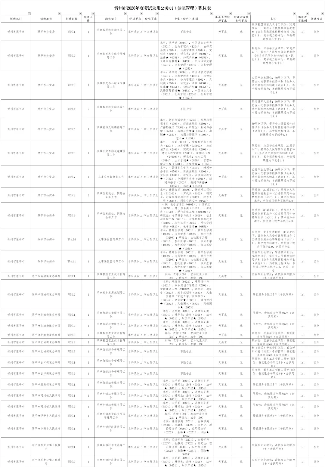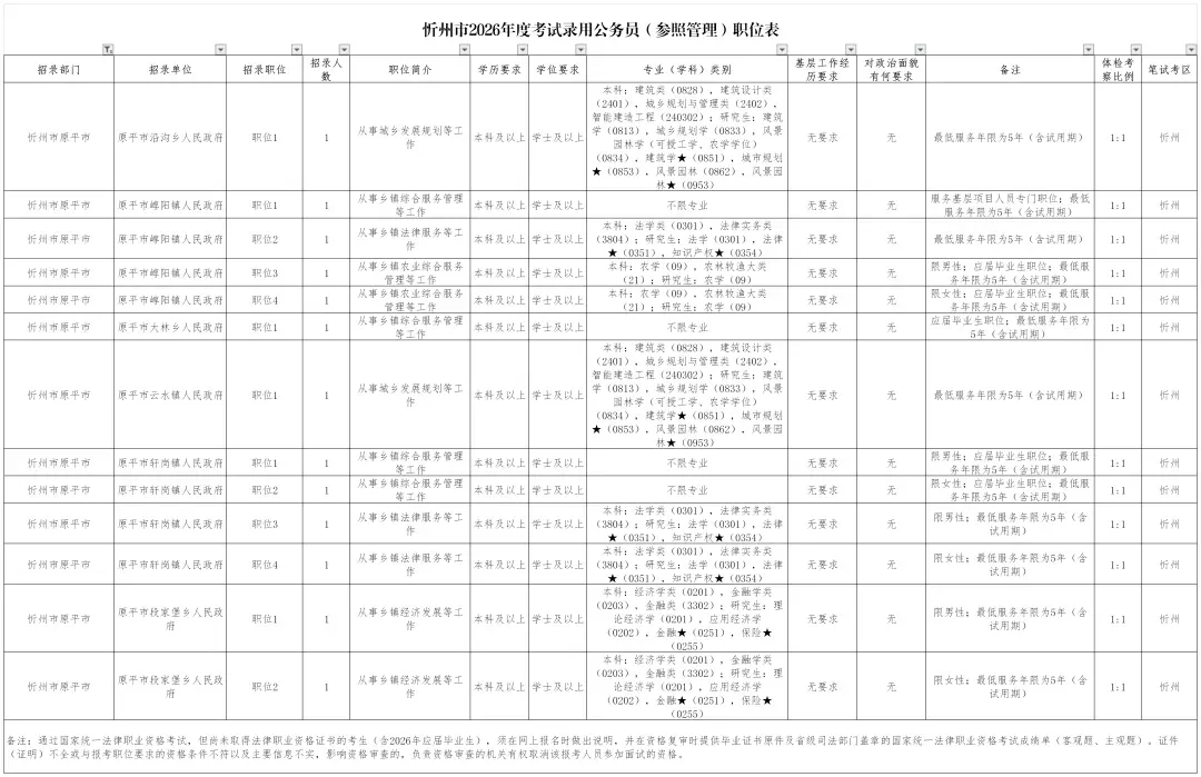 忻府区2026年度考试录用公务员职位表公布