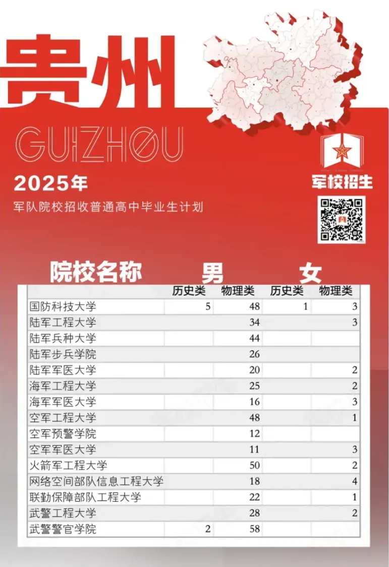 参考2025年的录取数据,整理出全国大学在贵州提前批招生的名单。2025年在贵州提前批招生的院校有中国人民公安大学、陕西师范大学、武警警官学院等,主要分为军事院校、定向培养军士院校、公费师范生、免费医学生、空军海军招飞、航海院校、公安司法院校等:今天给大家先分享军事类院校