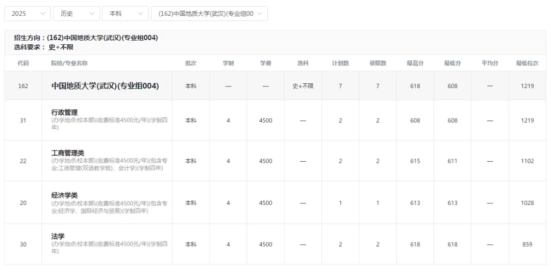 中国地质大学创建于1952年,前身是北京大学、清华大学、天津大学、唐山铁道学院等院校的地质系(科)合并组建的北京地质学院。1970年后,学校先后更名湖北地质学院、武汉地质学院,于1974年定址武汉 。1981年成为首批博士、硕士学位授予单位;1986年成为全国试办研究生院的高校;1987年更名中国地质大学,武汉、北京两地办学,总部在武汉;1997年跨入“211工程”重点建设高校行列;2000年由国土资源部划归教育部管理;2005年武汉、北京两地独立办学;2006年,教育部、原国土资源部签署共建中国地质大学协议,并成为教育部优势学科平台建设项目资助高校;2017年、2022年分别入选国家“双一流”建设 。