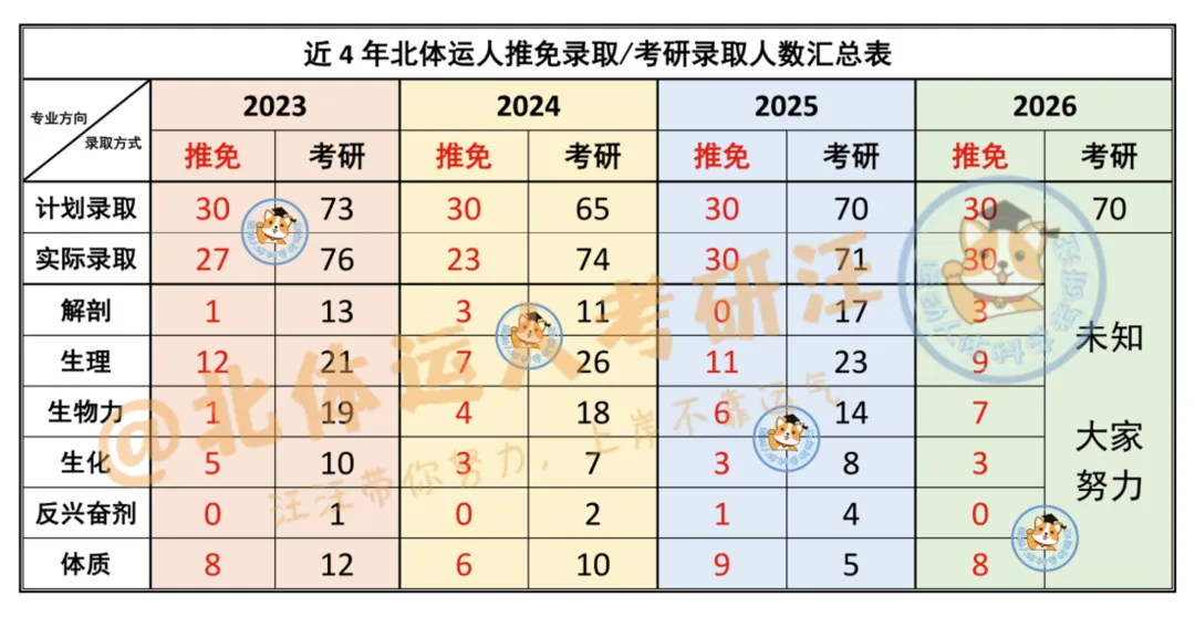 按照近几年的招生情况,北体运人统招名额基本稳定在70人左右,也就是说,准备27北体运人考研的你,需要在这70个统招名额中抢占一席之地。
