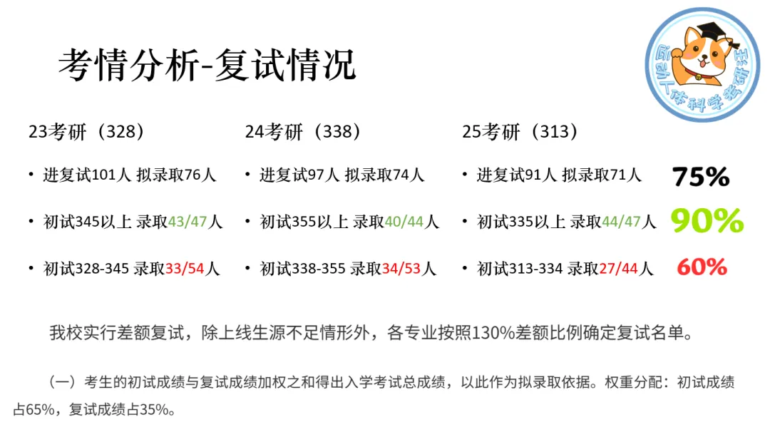 2.高分段 高分段的复试录取比例是很高的,例如25考研进入复试的47位高分段同学中,仅有3人未被录取,总的复试录取比在90%左右。前几年高分段同学的复试录取结果也比较类似,总之被录取概率很高。