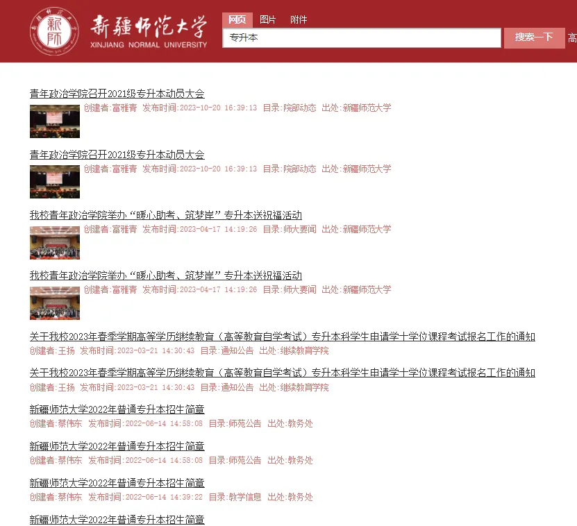 各院校招生办官网会发布各自院校的招生信息。例如招生简章,个别院校还会公布历年录取情况,而且在专升本考试结束后,同学们还可以去官网查询自己的录取情况,通知书等信息。新疆18所院校官网: