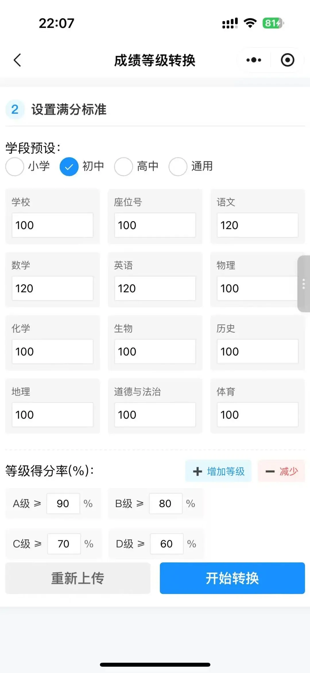 期末考试分数转换ABCDEF等级工具(分数等级一键1秒转换)