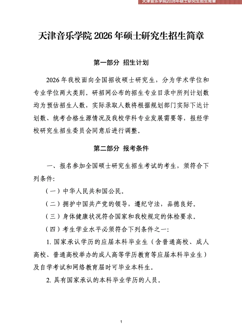 戏剧考研 | 2026年天津音乐学院戏剧硕士招生简章、专业目录