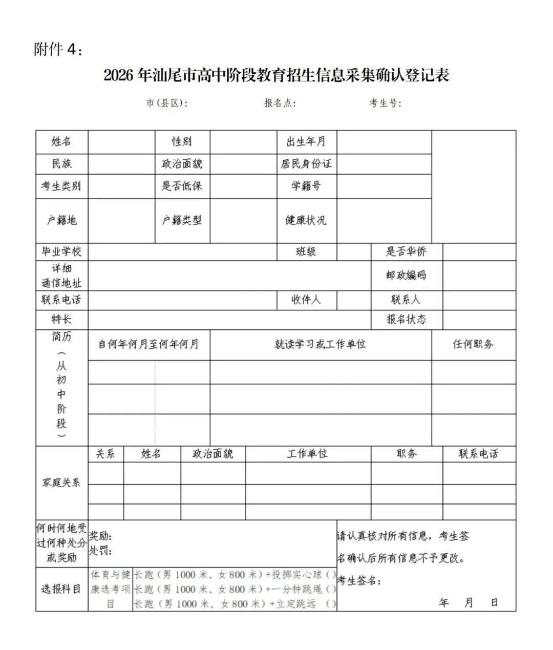 4.2026年汕尾市高中阶段教育招生信息采集确认登记表