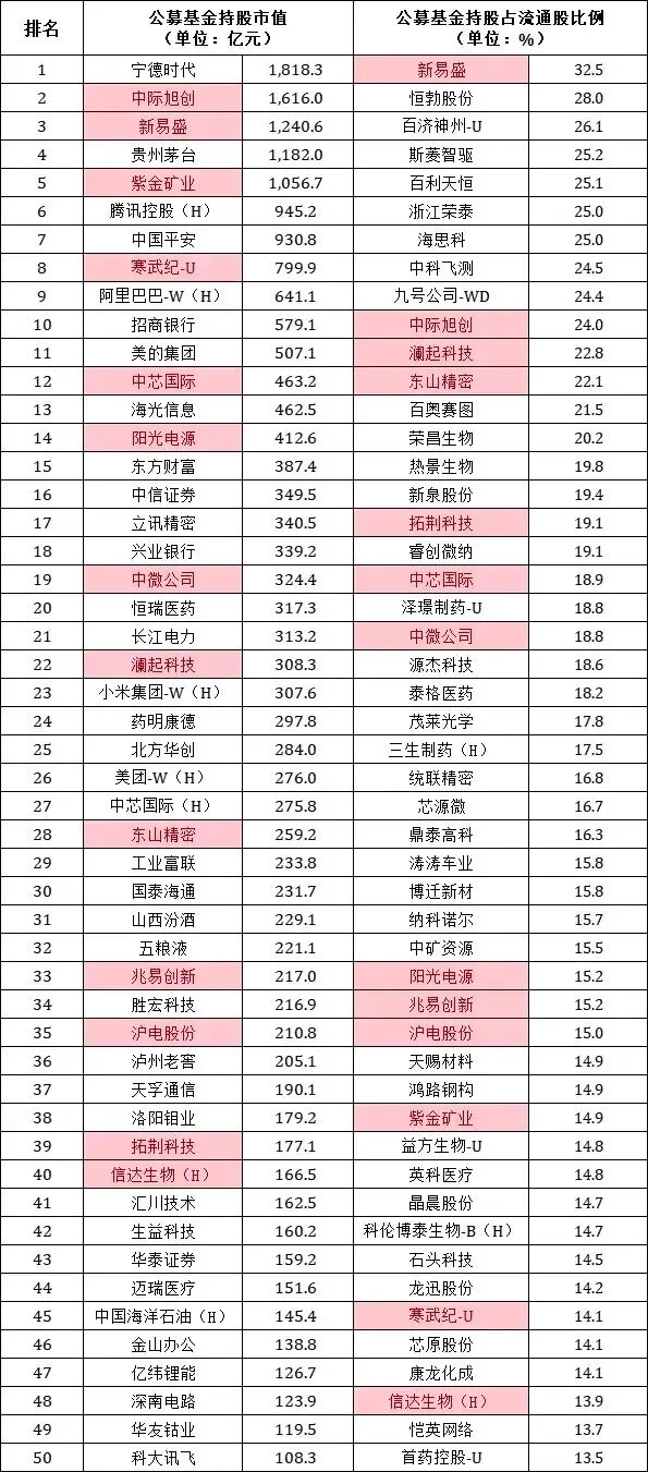 2025年结束,公募和外资的四季度重仓股名单(标红的为持股市值和持股比例都上榜的公司)。