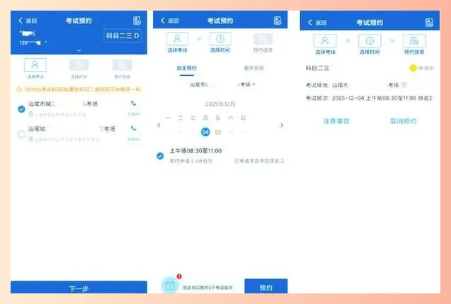 大家.都想约市区.考场,周末场.次。那你就反着来,选远一点的考场,.或者.工作日的下.午场。竞争.小得多,约上的.概.率蹭蹭涨。