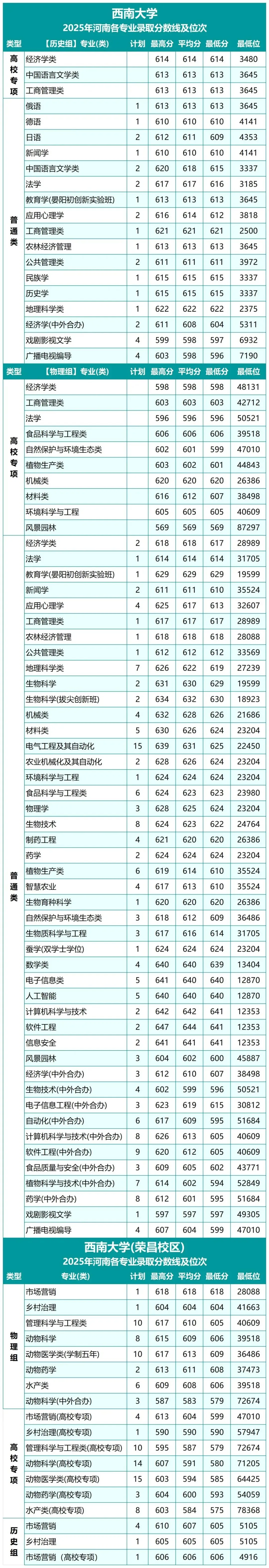 当前位置:首页>录取分数线>西南大学2025年河南各专业录取分数线及位次