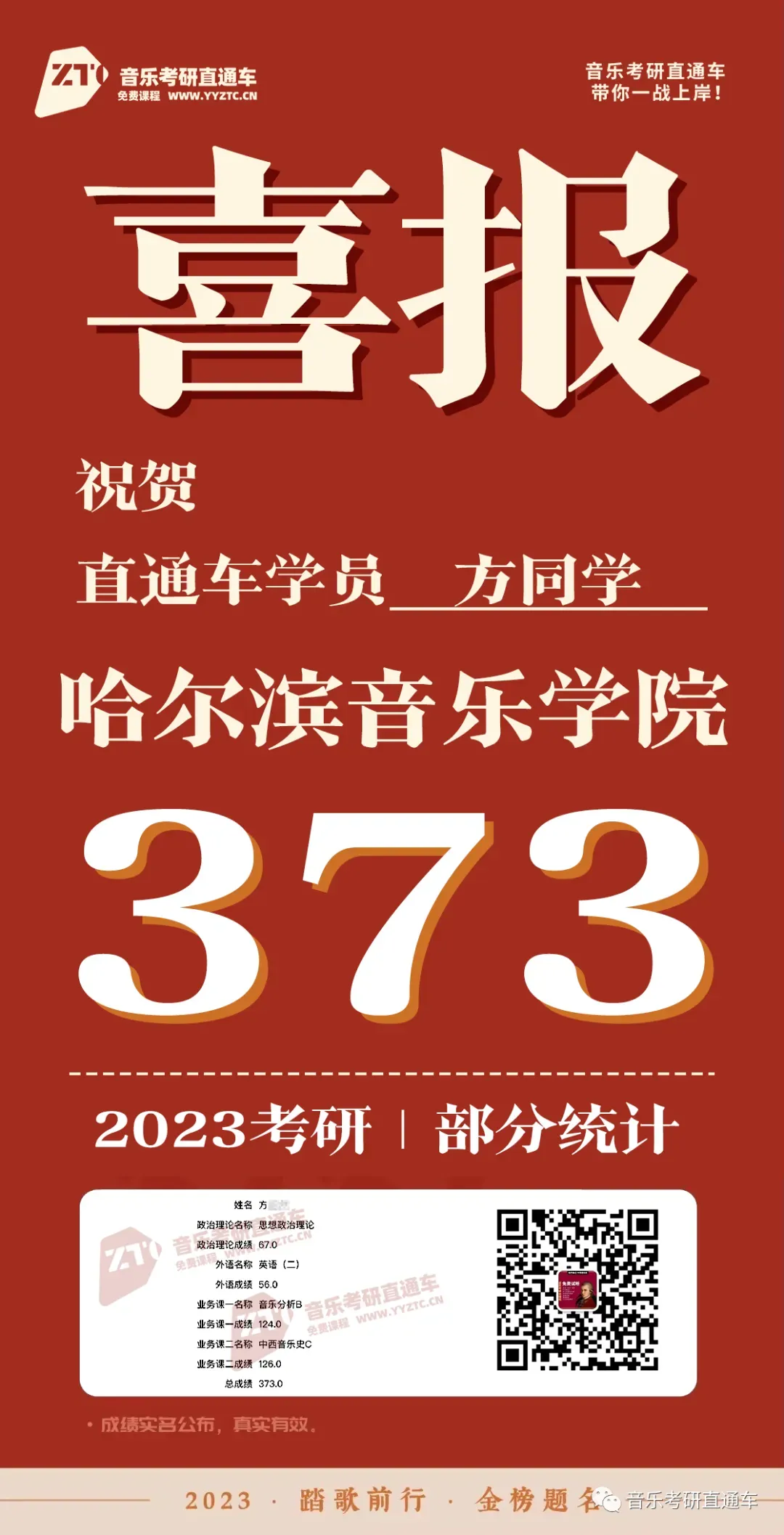 国内辅导哈尔滨音乐学院NO.1,音乐考研直通车成绩单: