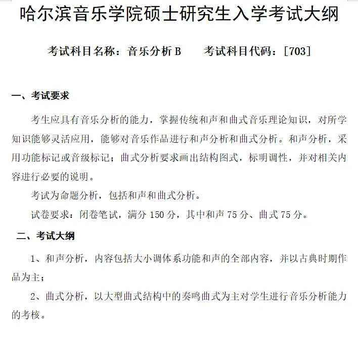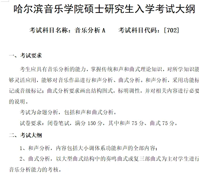 ·【音乐考研】2025年哈尔滨音乐学院考研702和声与作品分析真题谱例!