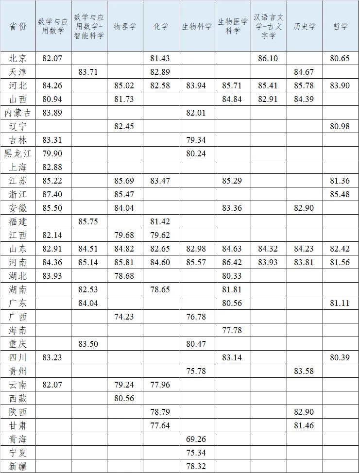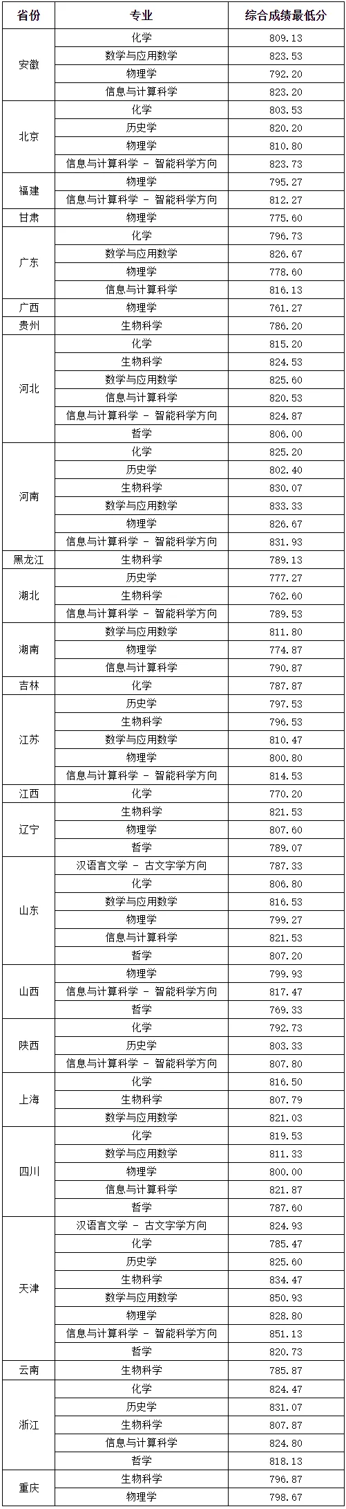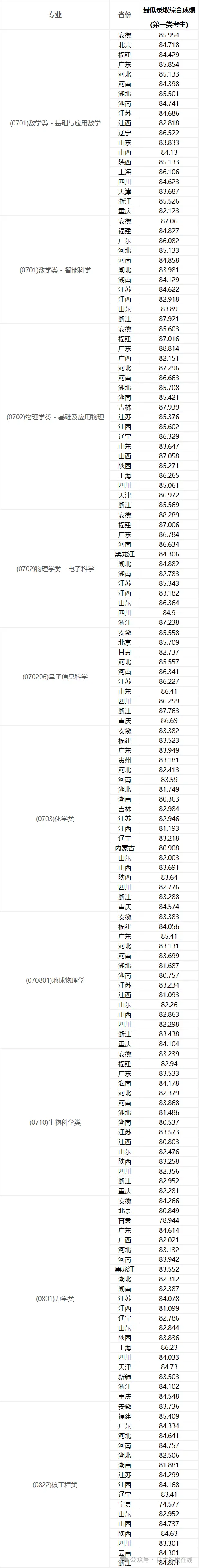说明:下表按照强基计划录取综合成绩百分制(校测成绩15分)进行折算,仅供查阅参考。
