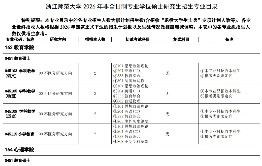 研究生招生信息网:https://yzw.zjnu.edu.cn