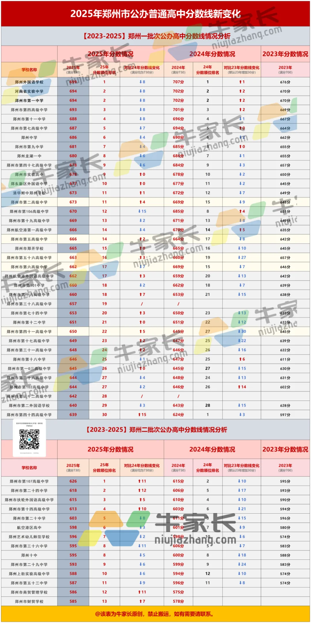 2025年郑州市公办高中录取分数线顺位排名来了!