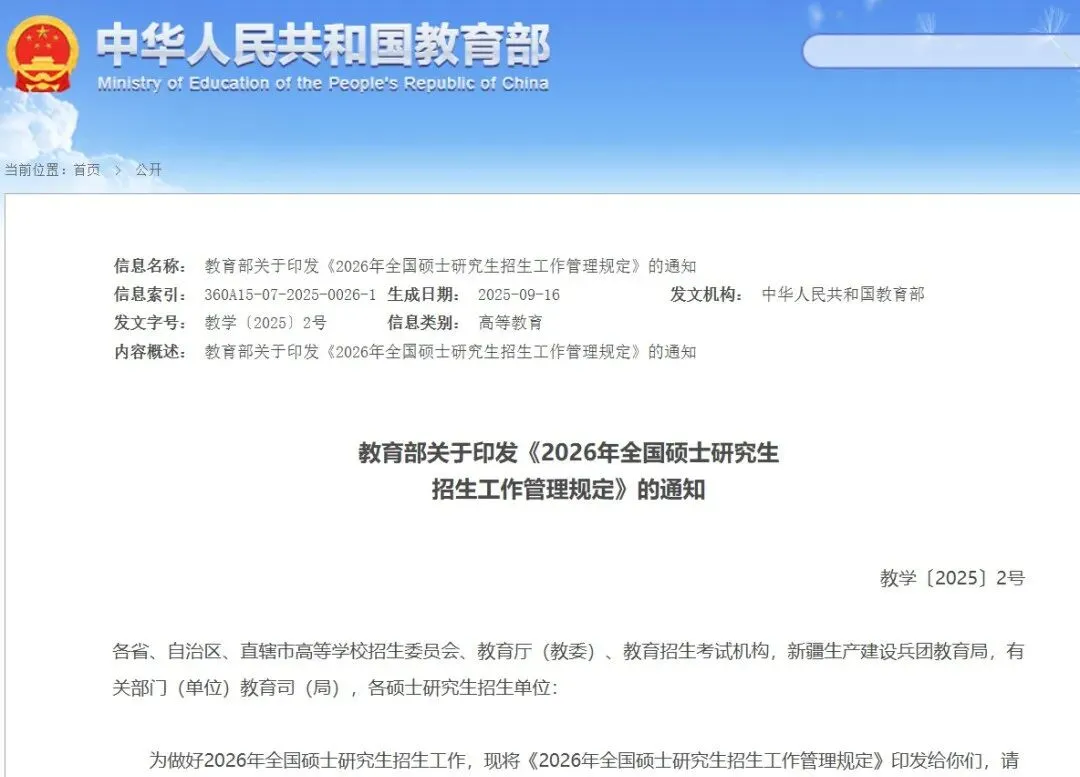 摘自教育部关于印发《2026年硕士研究生招生工作管理规定》的通知,其中第七章——复试。