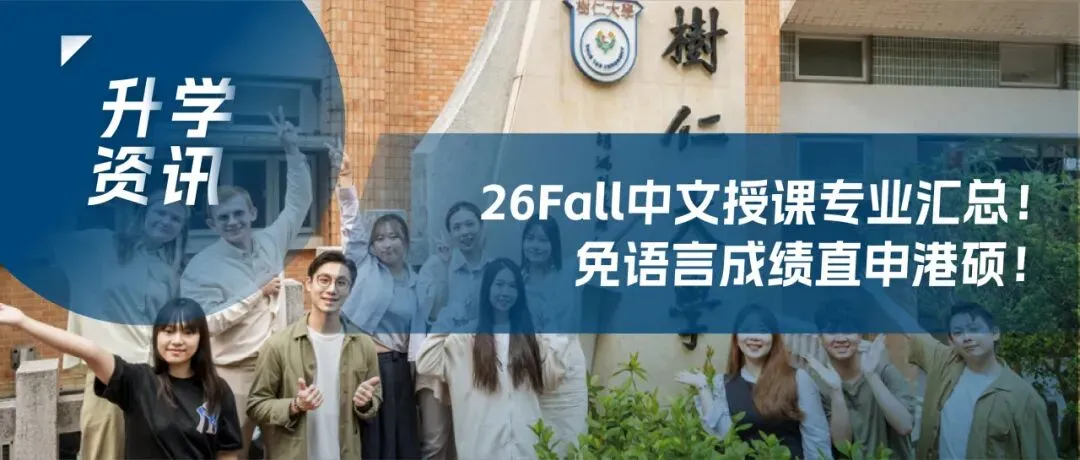 升学资讯 I 26Fall免语言中文授课硕士项目汇总!树仁大学又增新项目?