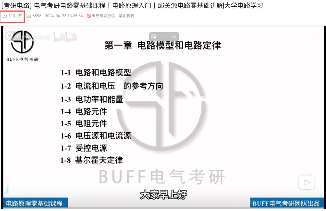 BUFF团队2027电气考研零基础课程播放量高达110万,