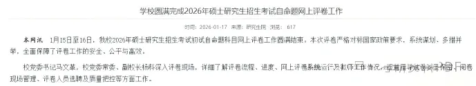 1月15日至16日,我校2026年硕士研究生招生考试初试自命题科目网上评卷工作圆满结束。