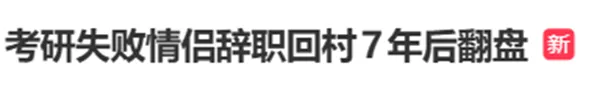 今日上午(1月22日),#考研失败情侣辞职回村7年后翻盘#话题登上微博热搜。