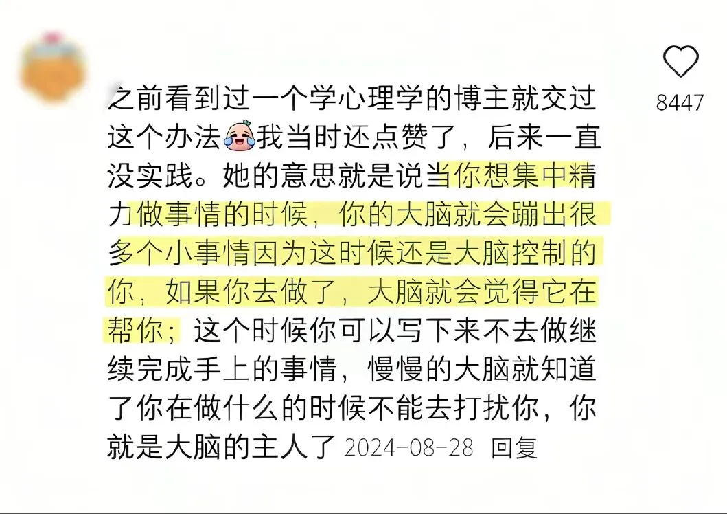 记录干扰 :走神时记下杂念,稍后处理,减少分心焦虑。