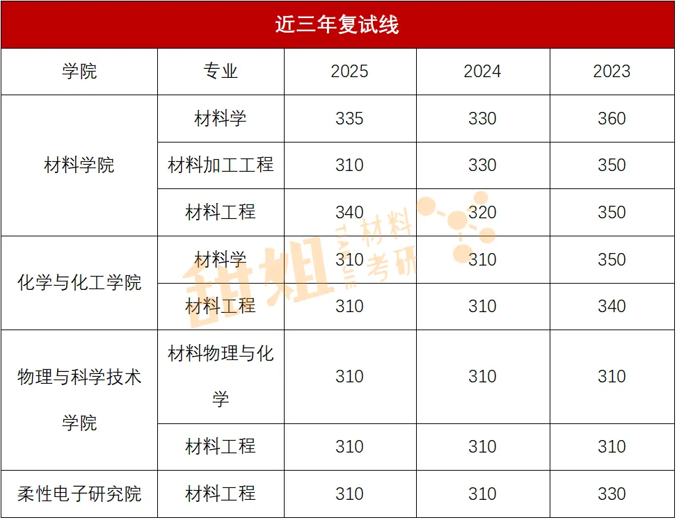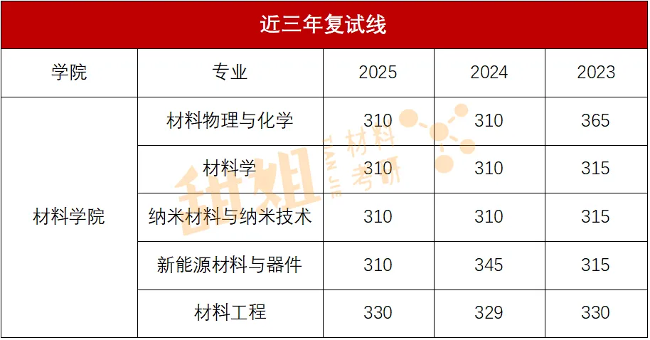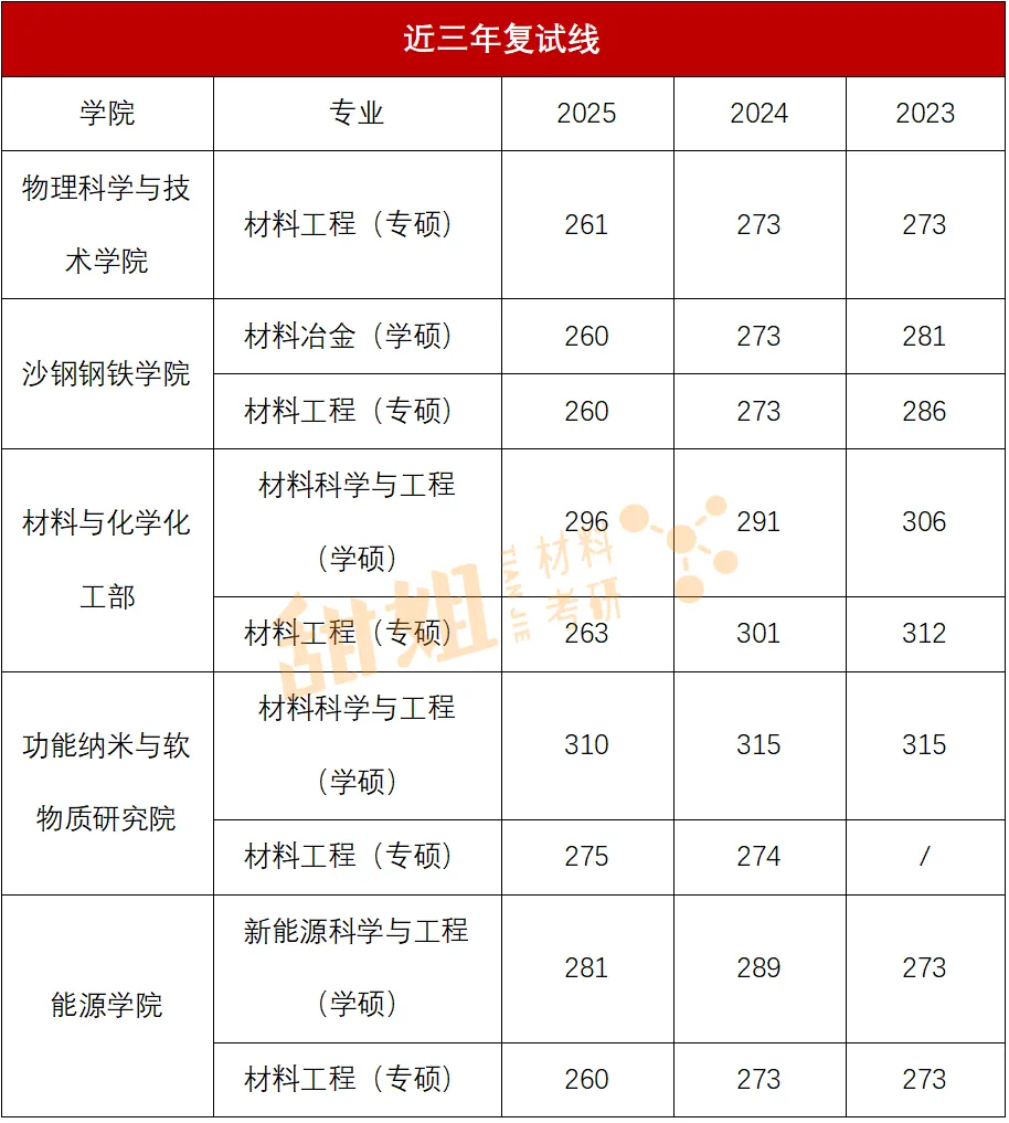 北科相关学院比较多,这里仅展示材料学部近三年复试线。