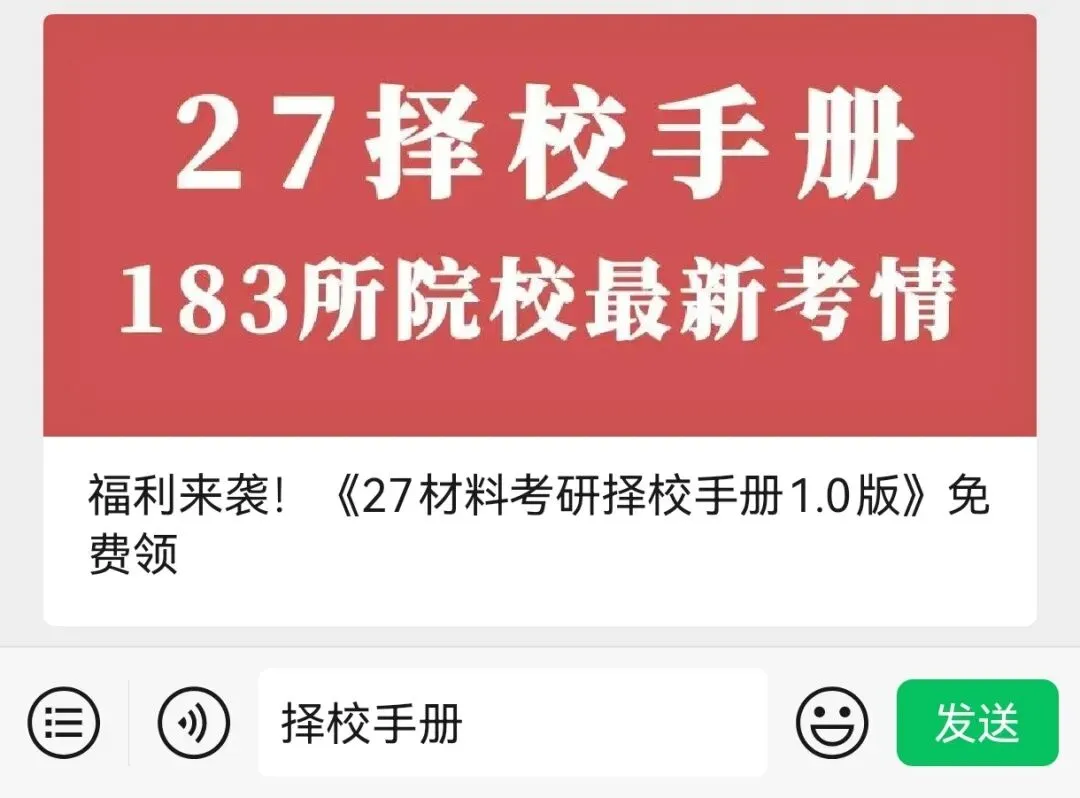 27材料考研的同学们,如果对于材料考研择校还有其他问题,可以领一份我们的择校手册看看!