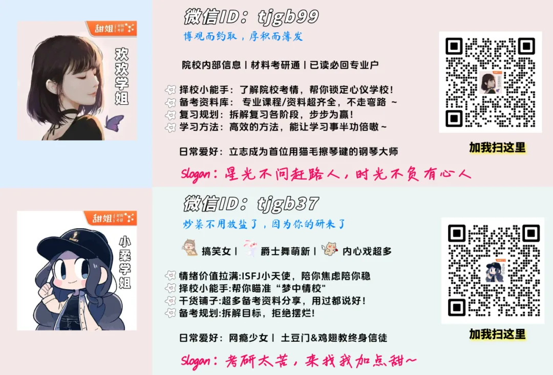 也可以直接添加欢欢学姐(tjgb99)或小柔学姐(tjgb37)的微信进行咨询哦!