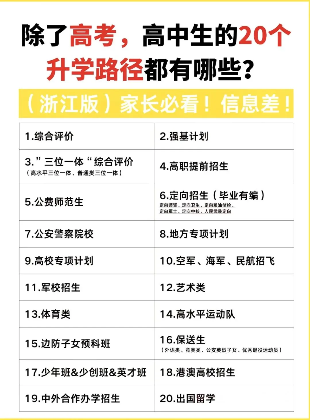 >家长必看!除了高考,浙江高中生的20个升学路径都有哪些?